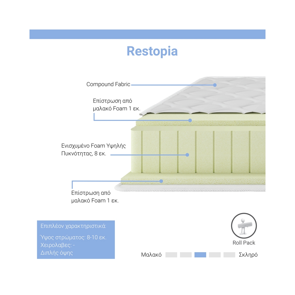 Εάν ψάχνετε ένα στρώμα κατασκευασμένο για να έχετε τον πιο ξεκούραστο ύπνο, τότε το Restopia είναι εδώ για εσένα. Κάνε την καλύτερη επιλογή για την ξεκούρασή σου ώστε να έχεις ενέργεια όλη την ημέρα.
