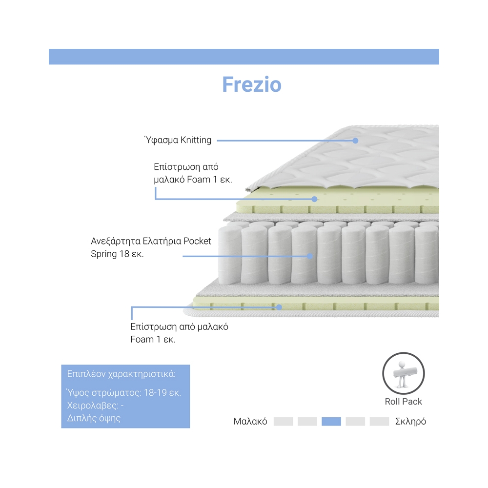 Στρώμα Frezio pakoworld pocket spring roll pack διπλής όψης 18-19cm 150x200εκ
