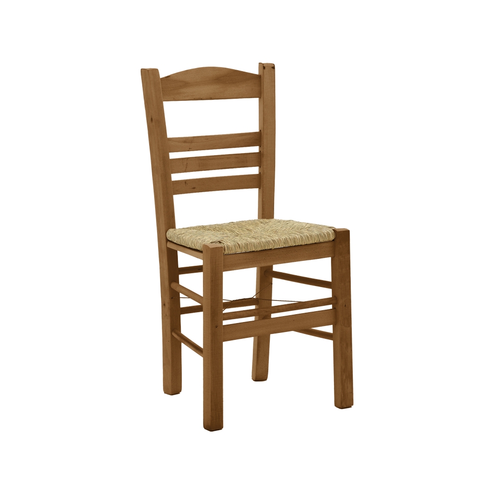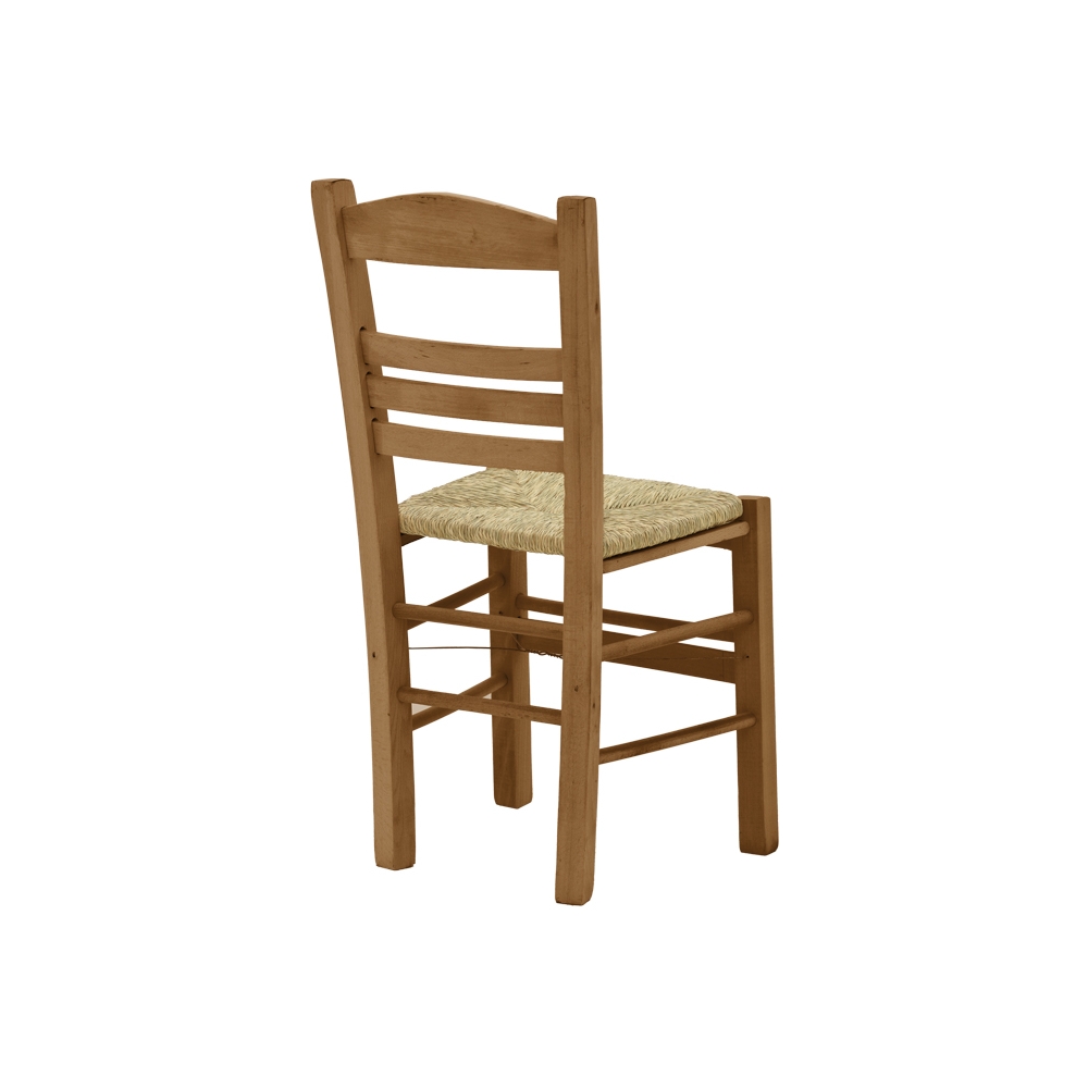 Τεχνικά χαρακτηριστικά: *Πλάτη και έδρα κατασκευασμένες από ξύλο εξαιρετικής ποιότητας με μεγάλη αντοχή. * Προσφέρεται σε καρυδί χρώμα. * Περιέχει ψάθα εξαιρετικής ποιότητας. Η ψάθα προσφέρει φυσική διαπνοή και άνεση στο κάθισμα, ενώ ταυτόχρονα προσθέτει ένα ιδιαίτερο στυλ στην εμφάνιση της καρέκλας. Η φυσική της παρουσία μπορεί να δημιουργήσει μια ευχάριστη αίσθηση εναρμόνισης με το φυσικό περιβάλλον, καθιστώντας την ιδανική για έναν άνετο και φιλόξενο χώρο καφενείου.