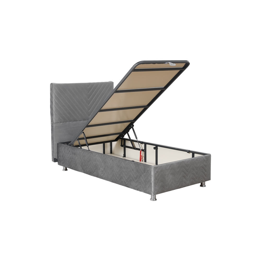Κρεβάτι Rizko pakoworld μονό με αποθηκευτικό χώρο γκρι 120x200εκΑναζητάτε την πολυτέλεια, την ποιότητα και την πρακτικότητα σε ένα κρεβάτι; Αν ναι, τότε το μοντέλο Rizko είναι αυτό που τα συνδυάζει όλα. Ο σχεδιασμός του κρεβατιού είναι μοντέρνος και λειτουργικός, προσαρμοζόμενος εύκολα σε ποικίλα διακοσμητικά στυλ και χώρους. Σχεδιασμένο να αποπνέει πολυτέλεια και κατασκευασμένο από ποιοτικά υλικά, δίνει την δυνατότητα να ανασηκωθεί η τάβλα προσφέροντας μεγάλο χώρο αποθήκευσης.