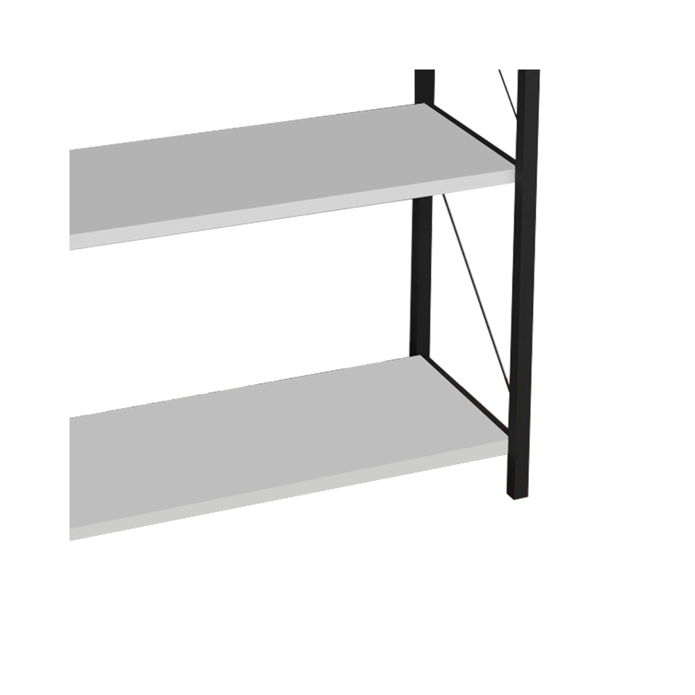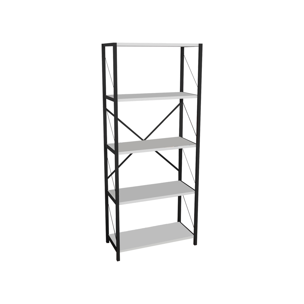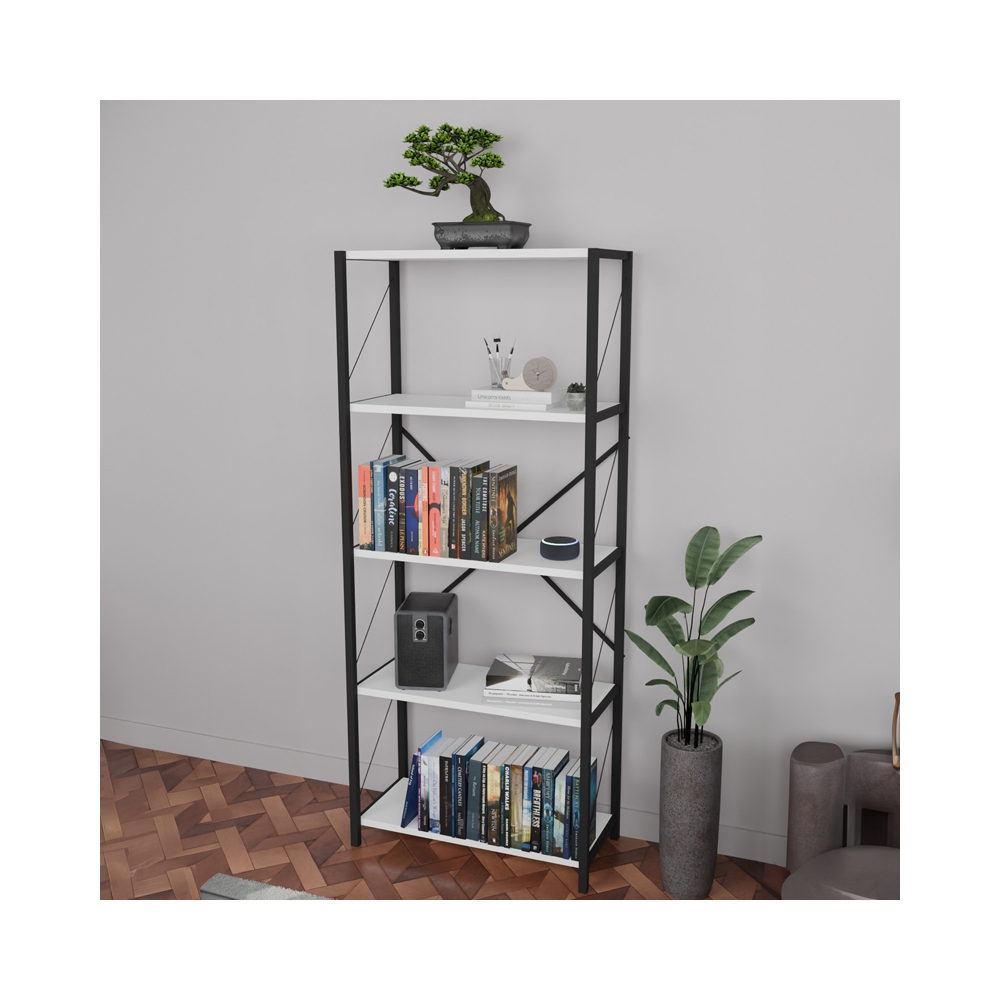 Τεχνικά χαρακτηριστικά: * Φέρει ανθεκτικό σκελετό στήριξης από ενισχυμένο μέταλλο εξαιρετικής ποιότητας με μεγάλη αντοχής σε φθορά και χρόνο. Τα ράφια είναι κατασκευασμένα από μοριοσανίδα μελαμίνης. Η μοριοσανίδα μελαμίνης είναι ένα είδος ξύλινου υλικού που αποτελείται από μικρά κομμάτια ξύλου που έχουν συνθετική επίστρωση με μελαμίνη. Το υλικό αυτό είναι γνωστό για την ανθεκτικότητα του και την εύκολη συντήρηση. Η επιφάνεια της μελαμίνης είναι λεία και ανθεκτική σε γρατζουνιές και χτυπήματα, κάνοντάς την κατάλληλη για καθημερινή χρήση. * Διαθέτει πέντε ράφια για την οργάνωση και αποθήκευση των βιβλίων και μικροαντικειμένων σας. * Προσφέρεται σε χρώμα λευκό-μαύρο.