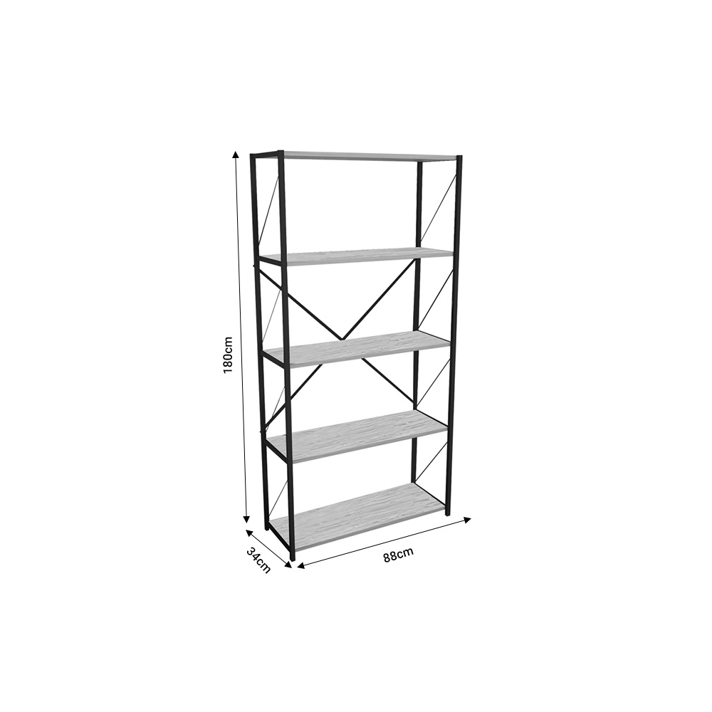 Τεχνικά χαρακτηριστικά: * Φέρει ανθεκτικό σκελετό στήριξης από ενισχυμένο μέταλλο εξαιρετικής ποιότητας με μεγάλη αντοχής σε φθορά και χρόνο. Τα ράφια είναι κατασκευασμένα από μοριοσανίδα μελαμίνης. Η μοριοσανίδα μελαμίνης είναι ένα είδος ξύλινου υλικού που αποτελείται από μικρά κομμάτια ξύλου που έχουν συνθετική επίστρωση με μελαμίνη. Το υλικό αυτό είναι γνωστό για την ανθεκτικότητα του και την εύκολη συντήρηση. Η επιφάνεια της μελαμίνης είναι λεία και ανθεκτική σε γρατζουνιές και χτυπήματα, κάνοντάς την κατάλληλη για καθημερινή χρήση. * Φέρει πέντε ράφια για την οργάνωση και αποθήκευση των βιβλίων και μικροαντικειμένων σας. * Προσφέρεται σε χρώμα oak-μαύρο.