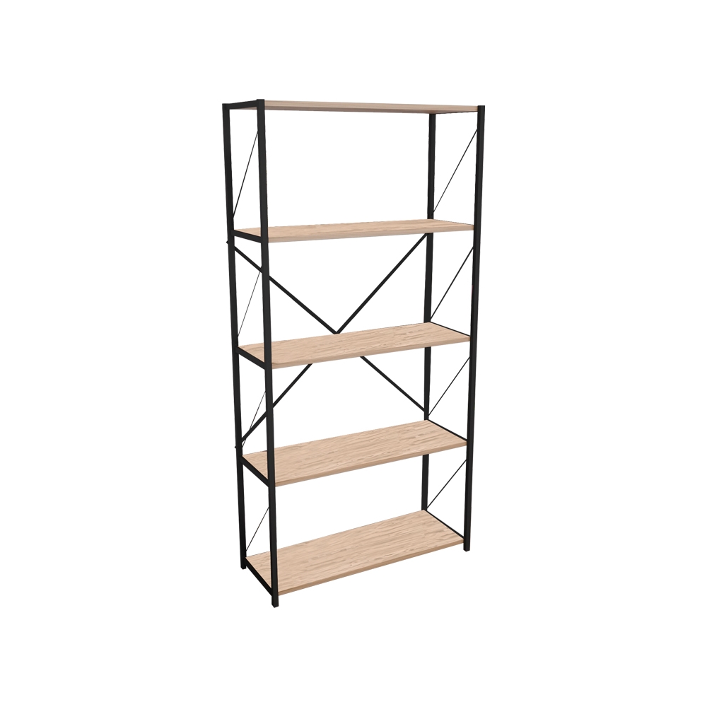 Βιβλιοθήκη Tikilmo pakoworld oak μελαμίνης-μαύρο μέταλλο 88x34x180εκ