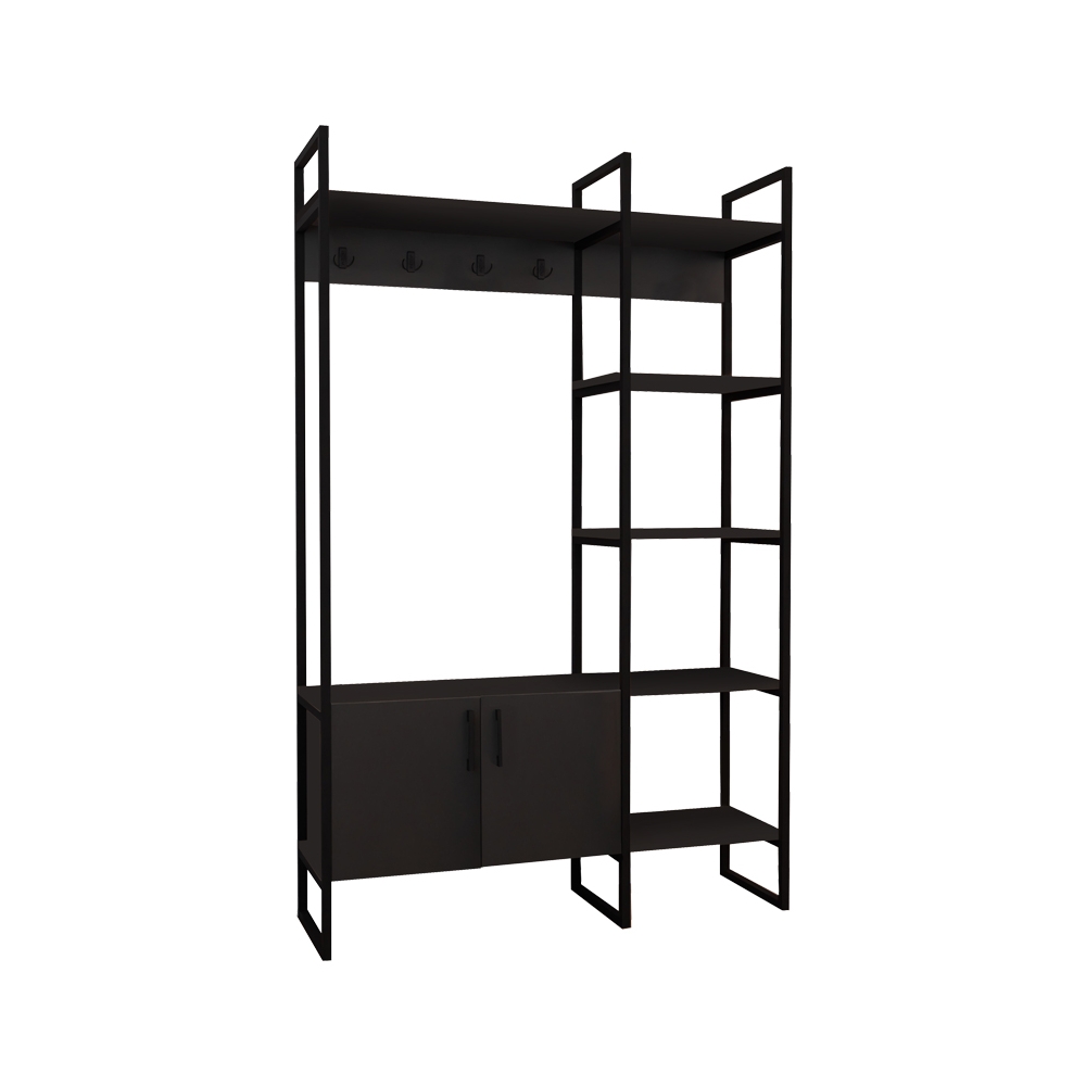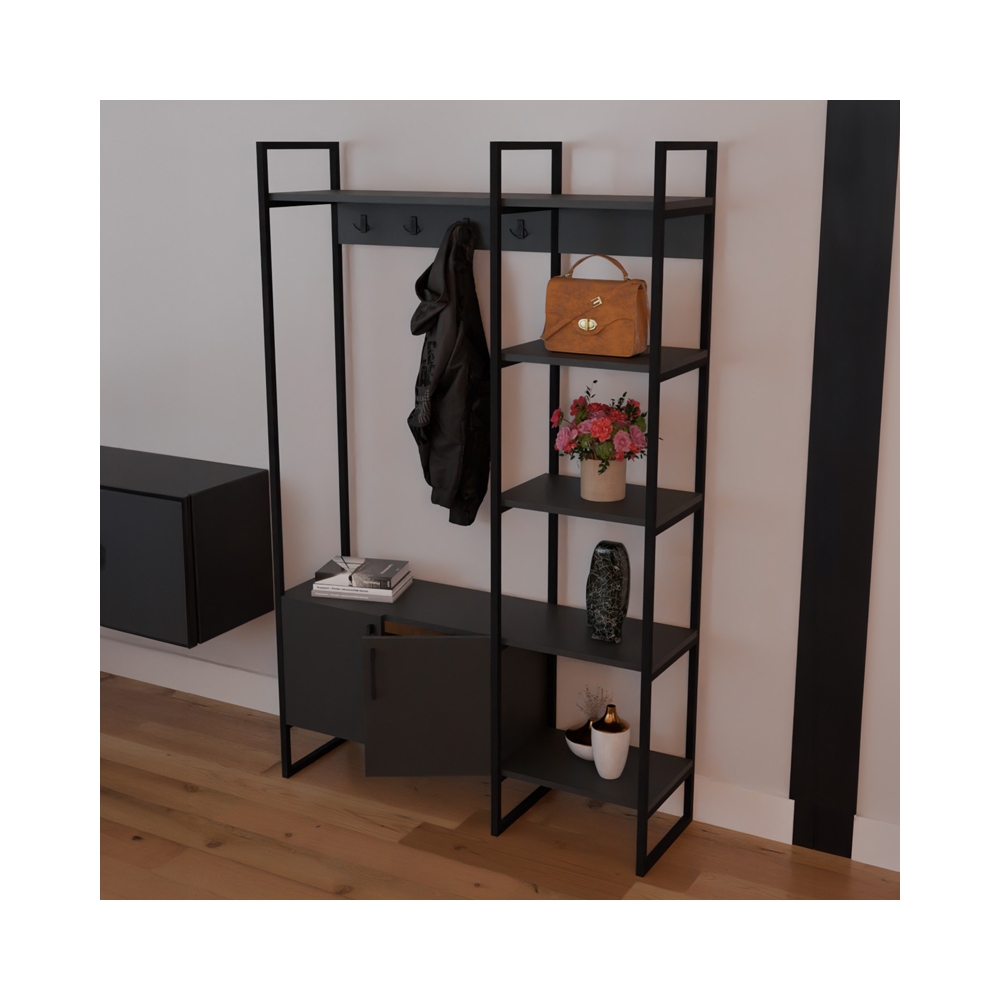 Έπιπλο εισόδου Thoj pakoworld ανθρακί μελαμίνης-μαύρο μέταλλο 120x34x180εκ