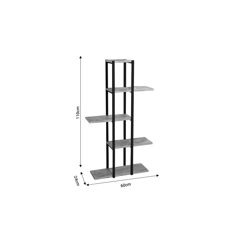 Τεχνικά χαρακτηριστικά: * Κατασκευή από μοριοσανίδα με επένδυση μελαμίνης υψηλών αντοχών στη φθορά και στο χρόνο. Η μοριοσανίδα μελαμίνης είναι ένα είδος ξύλινου υλικού που αποτελείται από μικρά κομμάτια ξύλου που έχουν συνθετική επίστρωση με μελαμίνη. Το υλικό αυτό είναι γνωστό για την ανθεκτικότητα του και την εύκολη συντήρηση. Η επιφάνεια της μελαμίνης είναι λεία και ανθεκτική σε γρατζουνιές και χτυπήματα, κάνοντάς την κατάλληλη για καθημερινή χρήση. * Στήριξη σε ενισχυμένο μεταλλικό σκελετό εξαιρετικής αντοχής σε βάρος και χρήση. * Φέρει πέντε ράφια για ανοιχτή αποθήκευση αντικειμένων. * Προσφέρεται σε χρώμα oak-μαύρο.