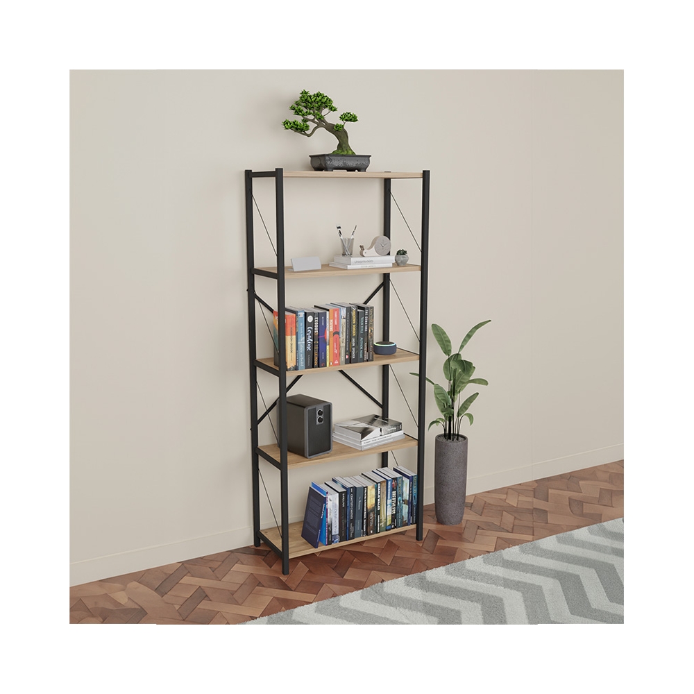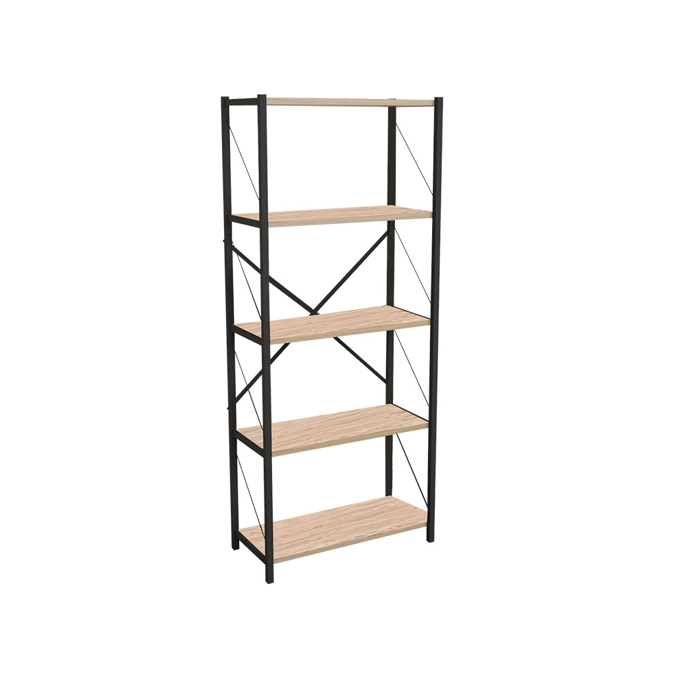 Βιβλιοθήκη Draizy pakoworld oak μελαμίνης-μαύρο μέταλλο 60x30x150εκ