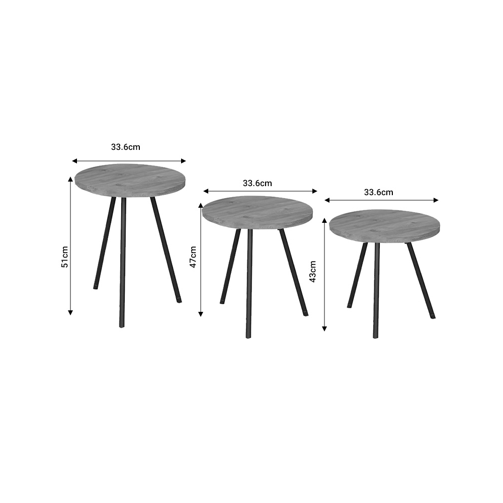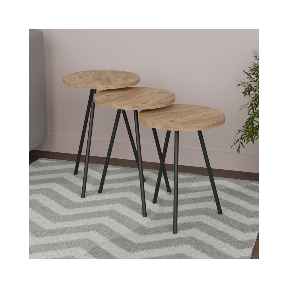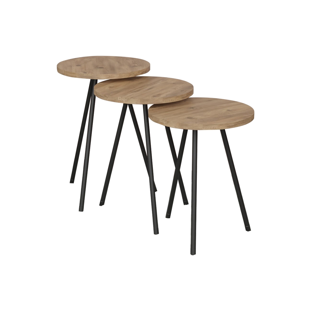Βοηθητικό τραπέζι Sebko pakoworld σετ 3τεμ oak μελαμίνης-μαύρο μέταλλο