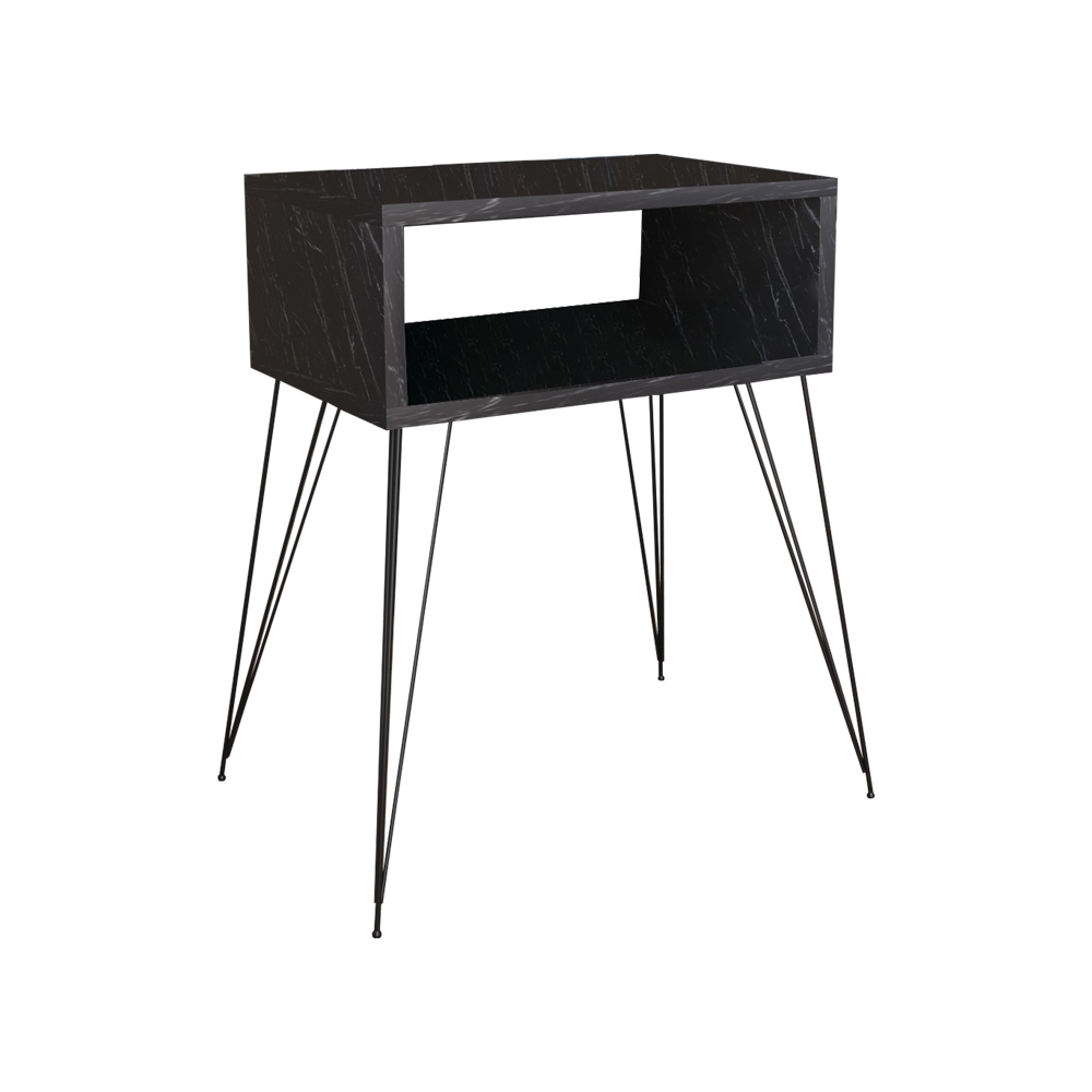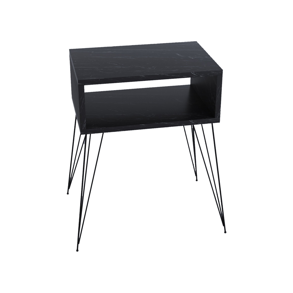 Τεχνικά χαρακτηριστικά: * Κατασκευασμένο από μοριοσανίδα με επένδυση μελαμίνης υψηλής ποιότητας, με αντοχή στην καταπόνηση και στον χρόνο. Η μοριοσανίδα μελαμίνης είναι ένα υλικό που χρησιμοποιείται ευρέως στην κατασκευή έπιπλων και άλλων ειδών εσωτερικής διακόσμησης. Αποτελείται από ξύλινες ή ινοσανίδες πλάκες που καλύπτονται με μια επιφάνεια μελαμίνης. Η μελαμίνη είναι μια τύπου πλαστικής επικάλυψης που προσφέρει ανθεκτικότητα στις γρατζουνιές, στο νερό και σε άλλες καθημερινές φθορές. * Προσφέρεται σε χρώμα μαύρο μαρμάρου. * Διαθέτει ράφι για ανοιχτή αποθήκευση και οργάνωση των αντικειμένων σας.