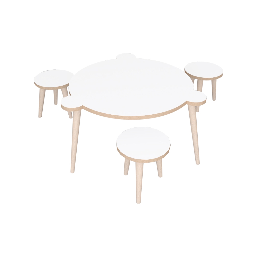 Τεχνικά χαρακτηριστικά: * Σταθερός σκελετός από ενισχυμένο mdf εξαιρεικής ποιότητας με αντοχή σε φθορά και χρήση. Είναι ένας τύπος ξύλου που παράγεται με τη συμπίεση μικρών ξυλείας σε συνδυασμό με ρητίνες και κατόπιν θερμικής επεξεργασίας. * Εμπεριέχεται στο σετ ένα τραπέζι και τρία σκαμπό * Προσφέρεται σε χρώμα λευκό