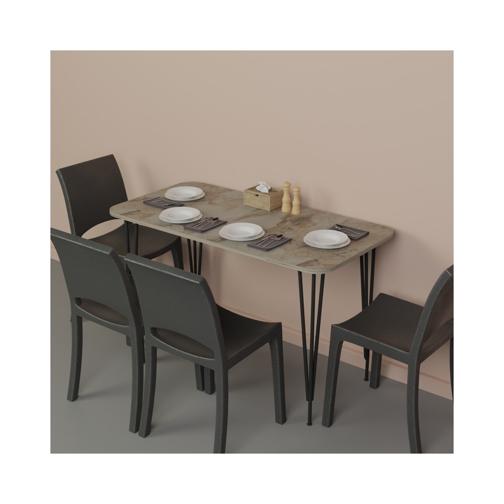 Τεχνικά χαρακτηριστικά: * Κατασκευή από μοριοσανίδα με επένδυση μελαμίνης υψηλών αντοχών στη φθορά και στο χρόνο. Η μοριοσανίδα μελαμίνης είναι ένα είδος ξύλινου υλικού που αποτελείται από μικρά κομμάτια ξύλου που έχουν συνθετική επίστρωση με μελαμίνη. Το υλικό αυτό είναι γνωστό για την ανθεκτικότητα του και την εύκολη συντήρηση. Η επιφάνεια της μελαμίνης είναι λεία και ανθεκτική σε γρατζουνιές και χτυπήματα, κάνοντάς την κατάλληλη για καθημερινή χρήση. * Στήριξη σε ενισχυμένο μεταλλικό σκελετό εξαιρετικής αντοχής σε βάρος και χρήση. * Προσφέρεται σε χρώμα γκρι- μαύρο.
