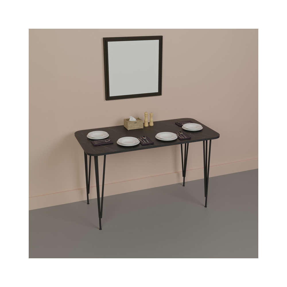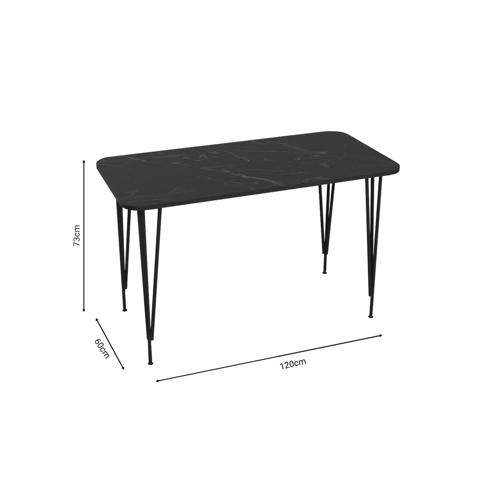 Τεχνικά χαρακτηριστικά: * Κατασκευή από μοριοσανίδα με επένδυση μελαμίνης υψηλών αντοχών στη φθορά και στο χρόνο. Η μοριοσανίδα μελαμίνης είναι ένα είδος ξύλινου υλικού που αποτελείται από μικρά κομμάτια ξύλου που έχουν συνθετική επίστρωση με μελαμίνη. Το υλικό αυτό είναι γνωστό για την ανθεκτικότητα του και την εύκολη συντήρηση. Η επιφάνεια της μελαμίνης είναι λεία και ανθεκτική σε γρατζουνιές και χτυπήματα, κάνοντάς την κατάλληλη για καθημερινή χρήση. * Στήριξη σε ενισχυμένο μεταλλικό σκελετό εξαιρετικής αντοχής σε βάρος και χρήση. * Προσφέρεται σε χρώμα μαύρο μαρμάρου.