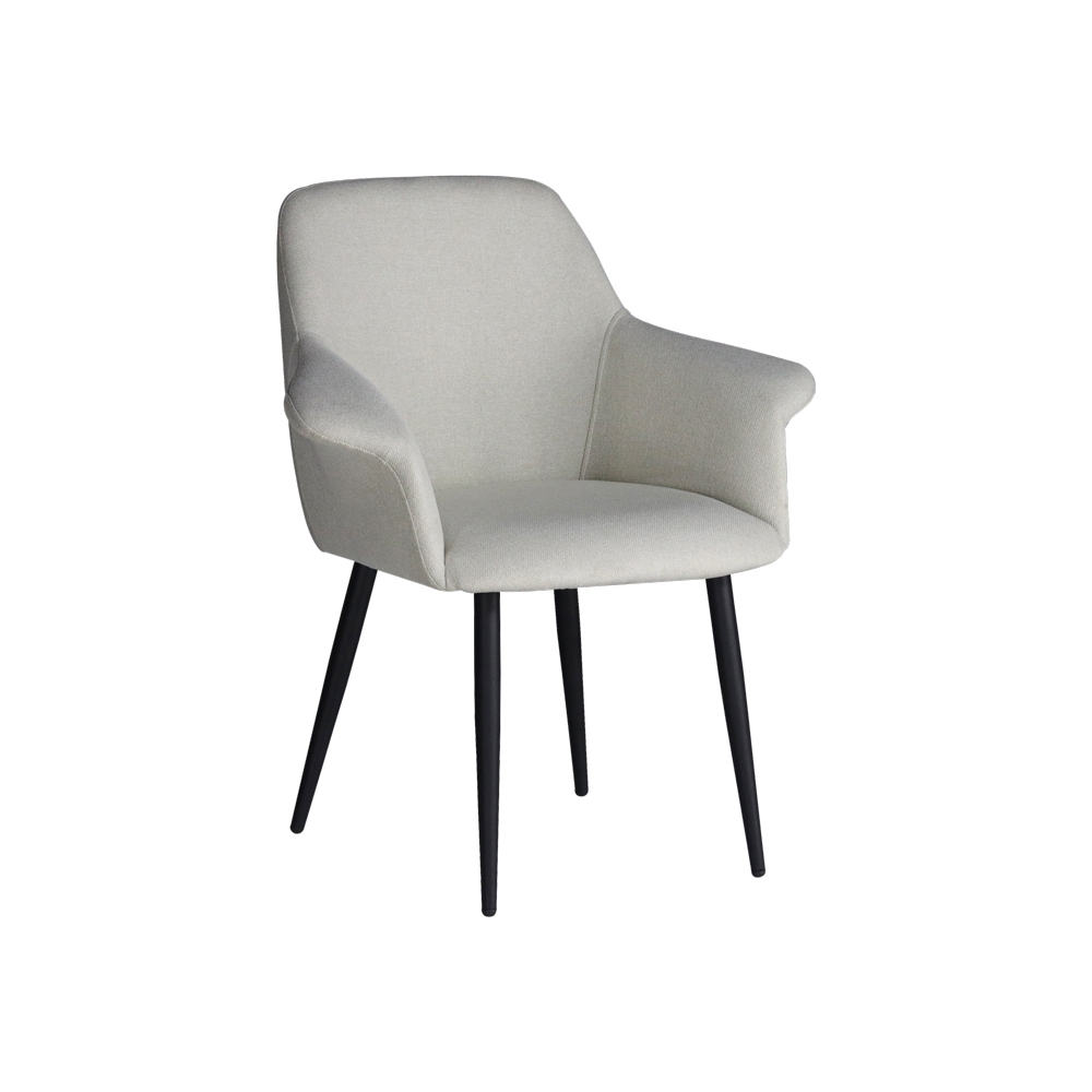 Τεχνικά χαρακτηριστικά: * Επένδυση καθίσματος με ύφασμα μεγάλης ανθεκτικότητας που ενισχύει την αίσθηση την κομψότητα της. * Στήριξη σε 4 μεταλλικά ενισχυμένα πόδια σε μαύρο χρώμα, εξαιρετικής ποιότητας και αντοχής στο βάρος όσο και στο χρόνο. * Περιέχει μπράτσα για την ξεκούραση των χεριών. * Προσφέρεται σε χρώμα εκρού-μαύρο.