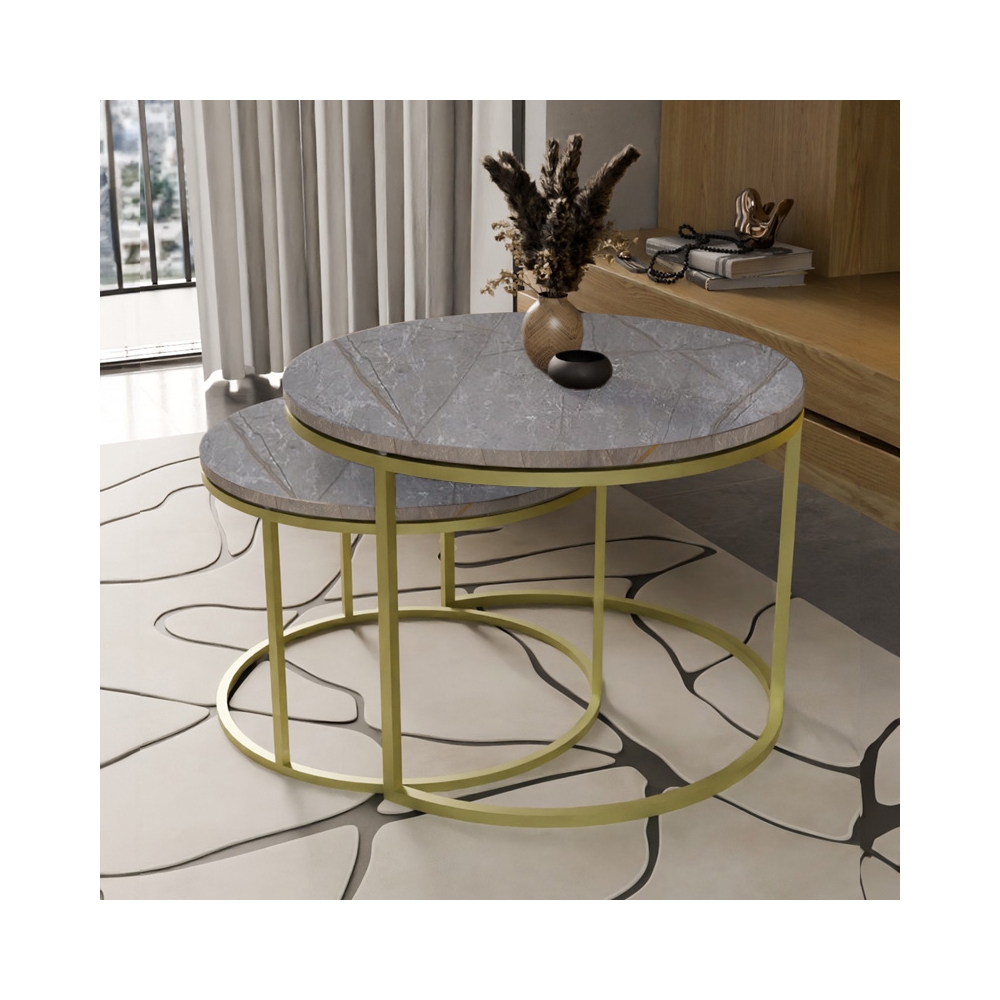 Τραπέζια σαλονιού Solme pakoworld σετ 2τεμ γκρι μάρμαρου μελαμίνης-χρυσό μέταλλο
