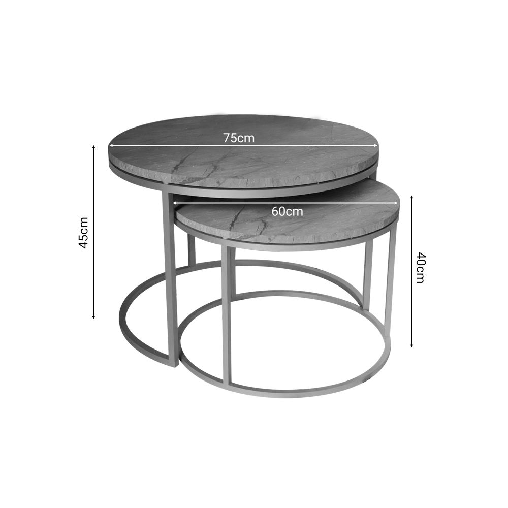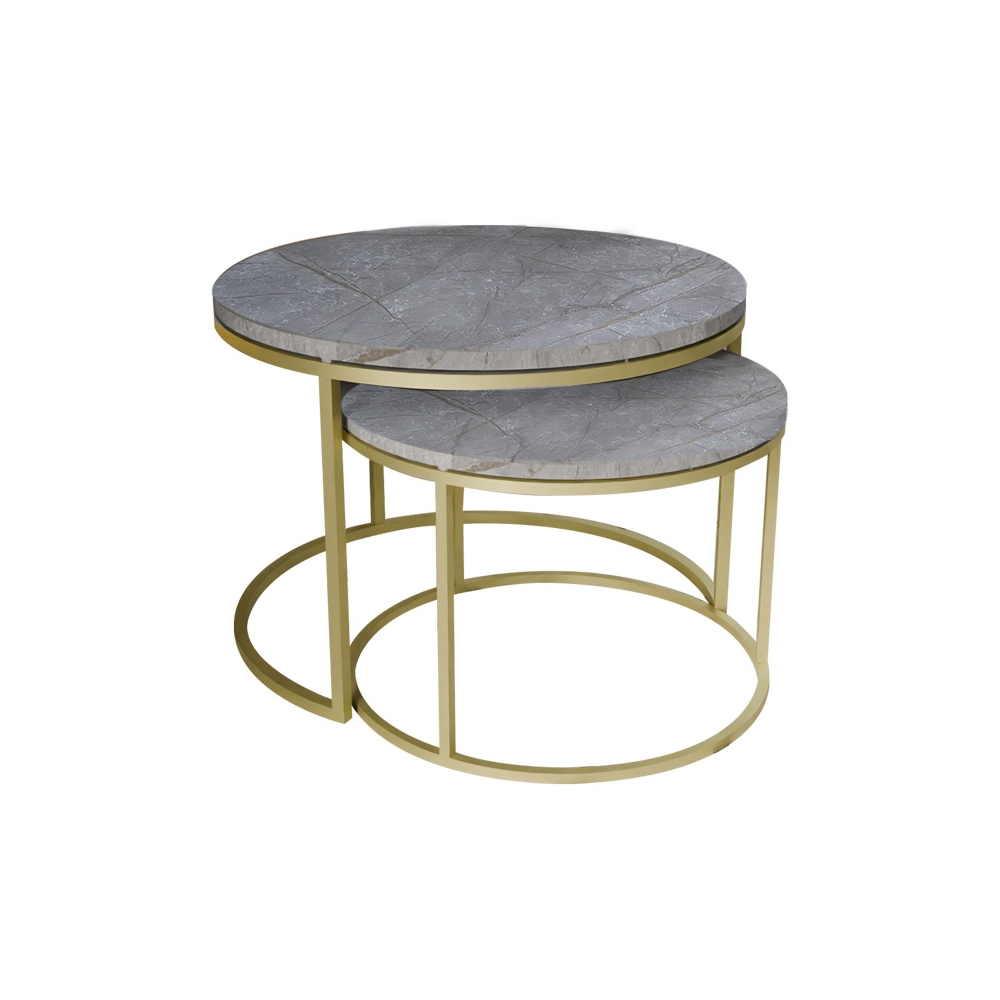 Τραπέζια σαλονιού Solme pakoworld σετ 2τεμ γκρι μάρμαρου μελαμίνης-χρυσό μέταλλο Pakoworld 321-000074
