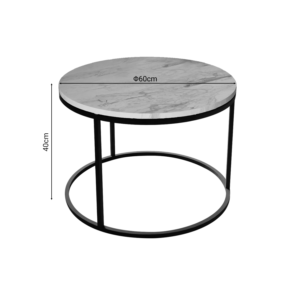 Τεχνικά χαρακτηριστικά: * Σταθερός σκελετός από μέταλλο εξαιρετικής ποιότητας και κυρίως επιφάνεια από μοριοσανίδα με επένδυση μελαμίνης αντοχής στη φθορά και στο χρόνο. Η μοριοσανίδα μελαμίνης είναι ένα είδος ξύλινης σανίδας που κατασκευάζεται με εφαρμογή μελαμίνης, μια συνθετική ρητίνη, στην επιφάνειά της. Η μελαμίνη προσδίδει αντοχή στη σανίδα ενώ παράλληλα την κάνει ανθεκτική σε γρατζουνιές, υγρασία και άλλες καθημερινή χρήση. * Προσφέρεται σε χρώμα λευκό με όψη μαρμάρου. * Στήριξη σε μεταλλικό σκελετό μαύρου χρώματος