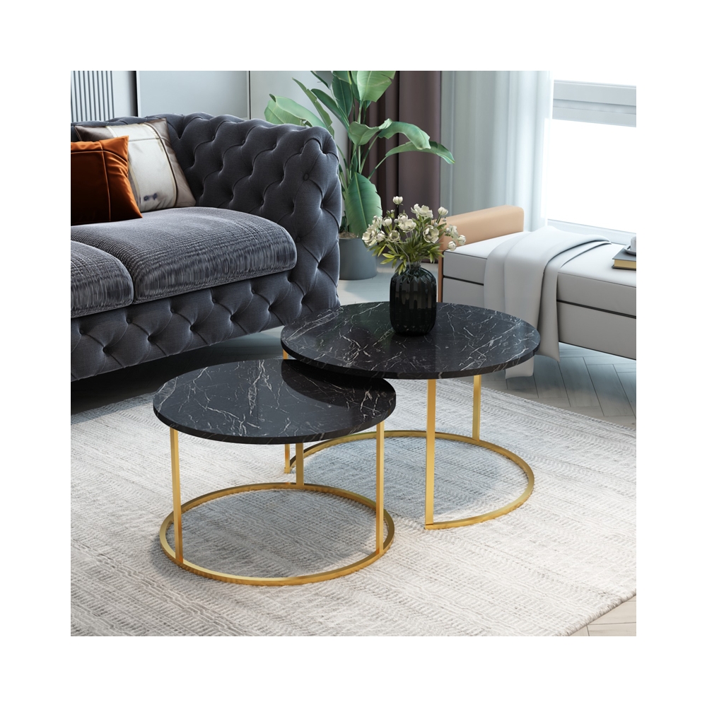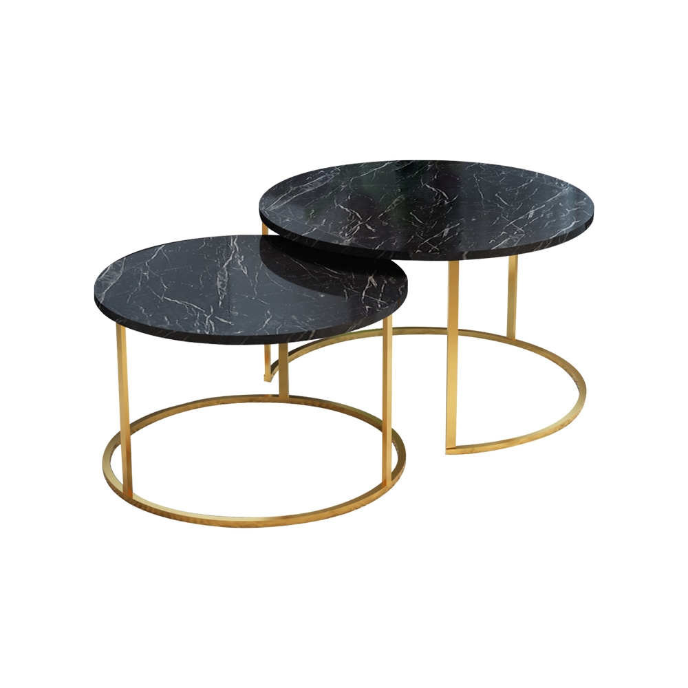 Τραπέζια σαλονιού Solme pakoworld σετ 2τεμ μαύρο μάρμαρου μελαμίνης-χρυσό μέταλλο