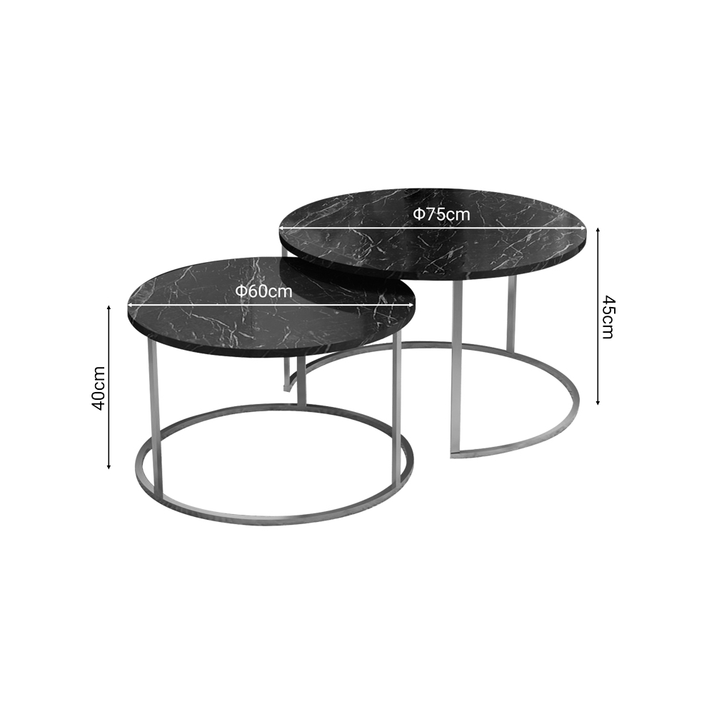 Τραπέζια σαλονιού Solme pakoworld σετ 2τεμ μαύρο μάρμαρου μελαμίνης-χρυσό μέταλλο Pakoworld 321-000072