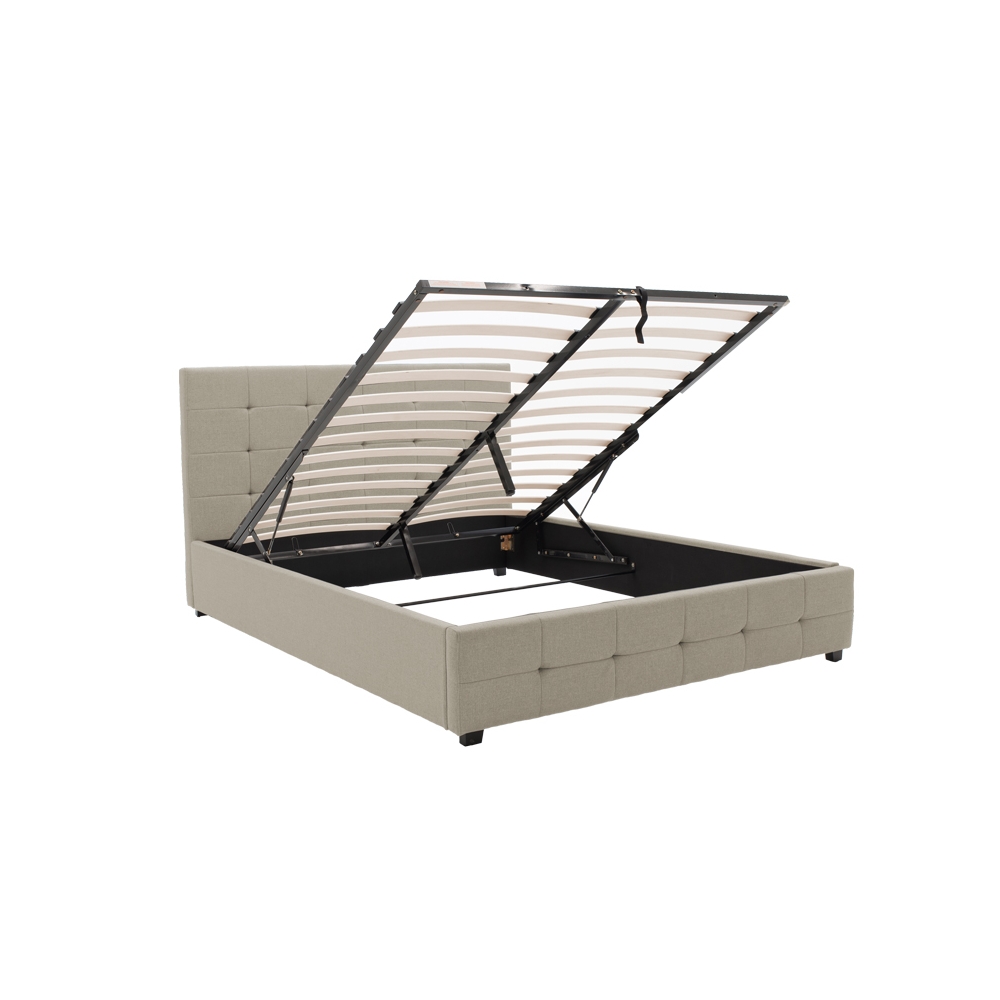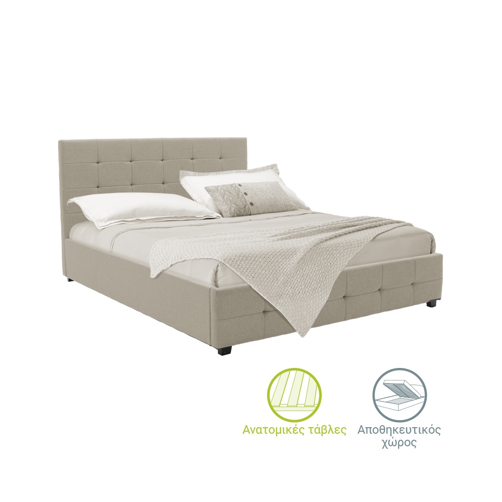 Κρεβάτι Roi pakoworld διπλό με αποθηκευτικό χώρο ύφασμα εκρού 160x200εκ