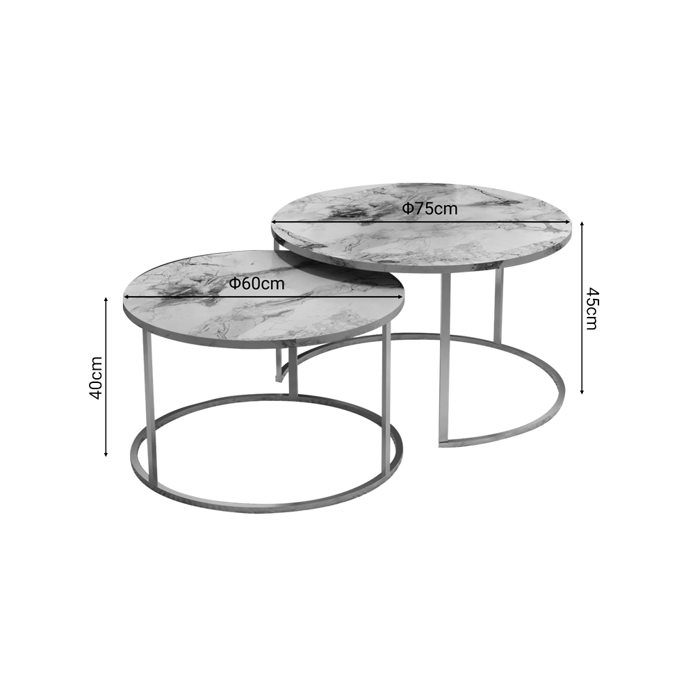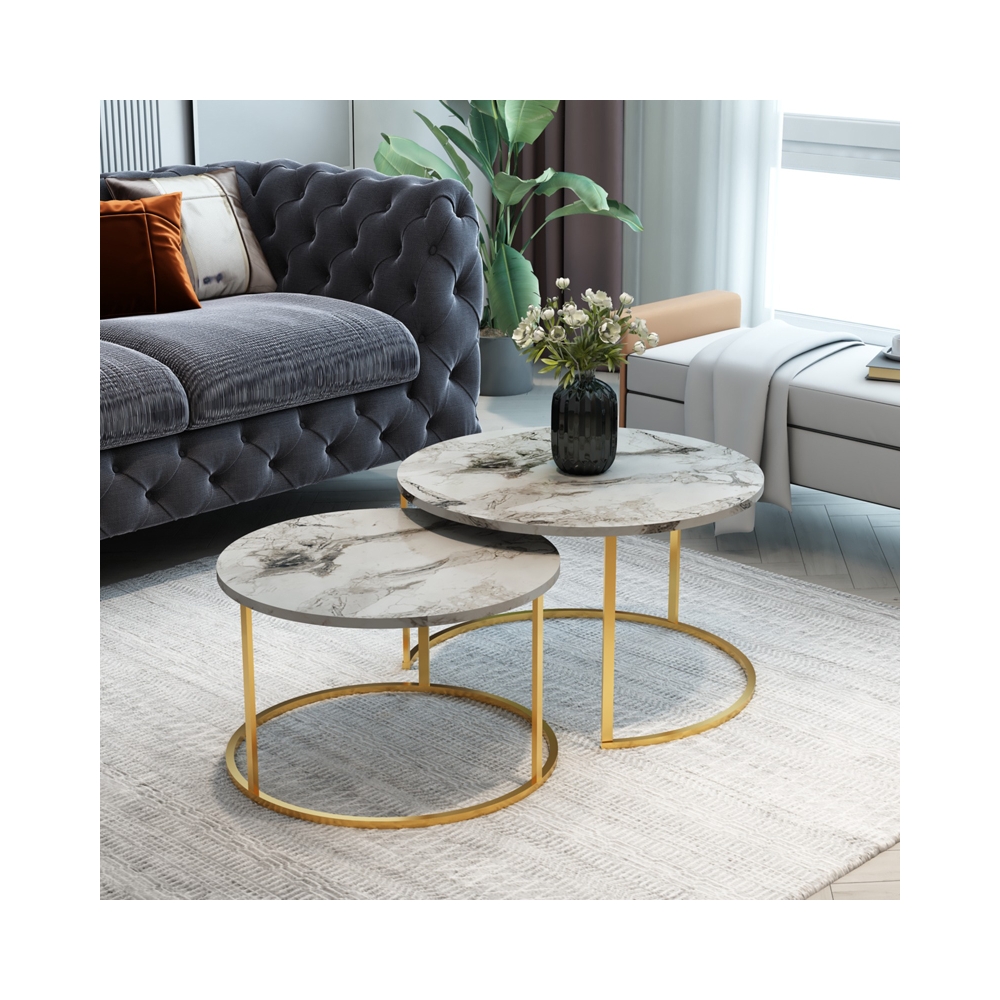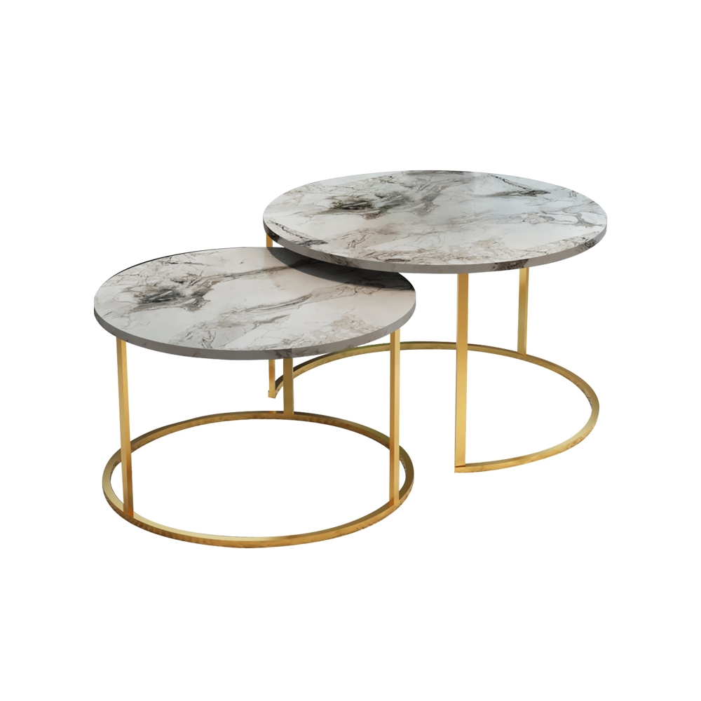 Τραπέζια σαλονιού Solme pakoworld σετ 2τεμ λευκό μάρμαρου μελαμίνης-χρυσό μέταλλο
