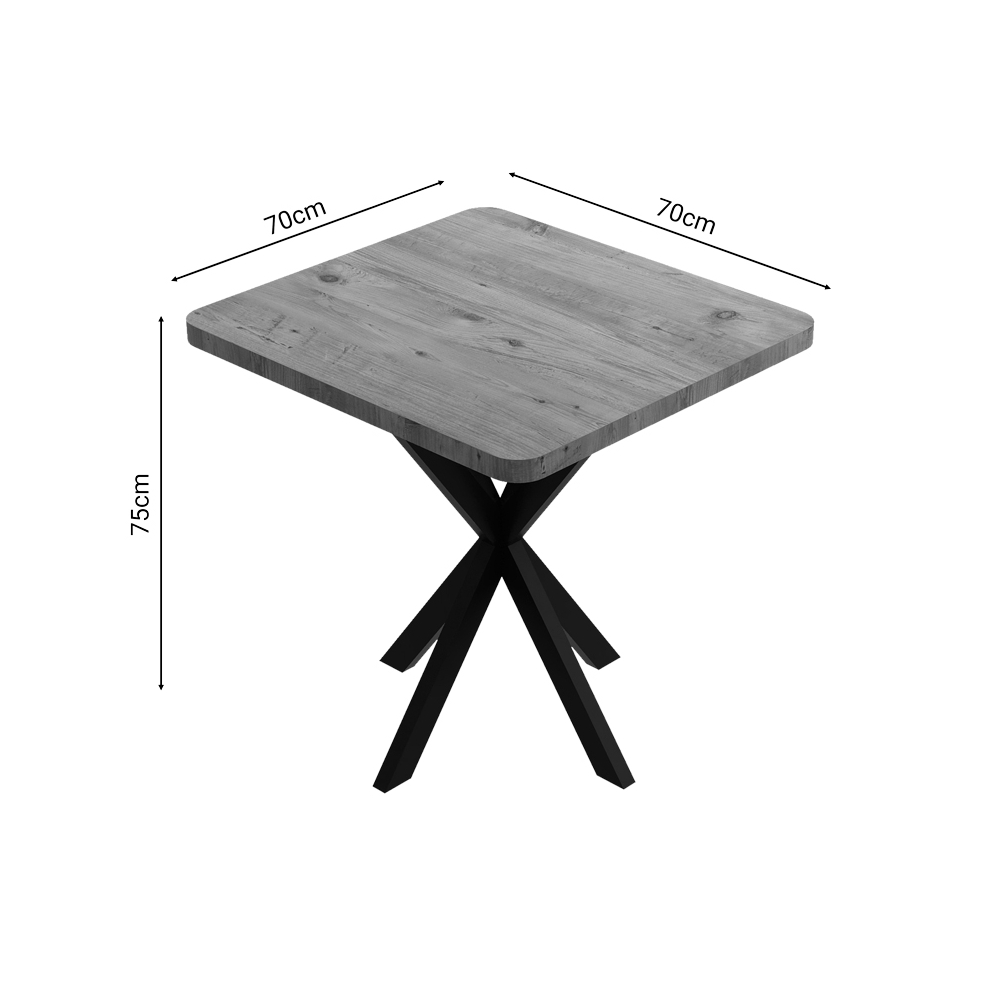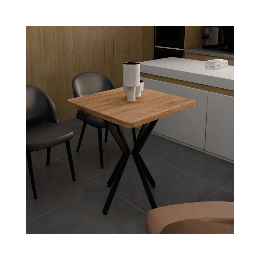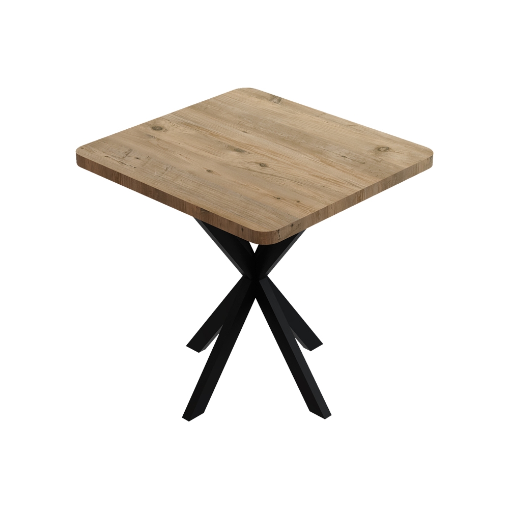 Τραπέζι Prestone pakoworld oak μελαμίνης-μαύρο μέταλλο 70x70x75εκ