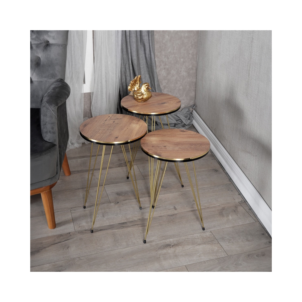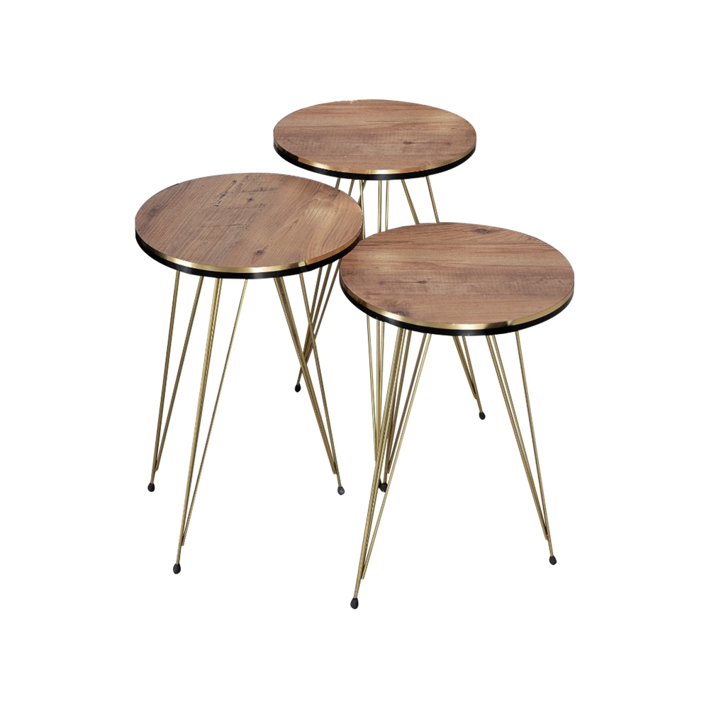 Βοηθητικά τραπέζια Wakmi pakoworld σετ 3τεμ oak μελαμίνης-χρυσό μέταλλο