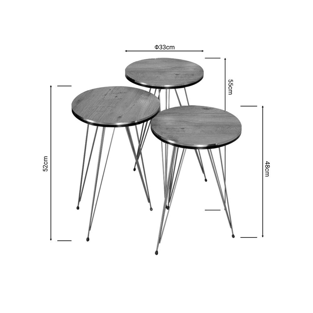 Διάσταση τραπεζιών: Διάσταση μεγάλου τραπεζιού: 33x33x55 εκ Διάσταση μεσσαίου τραπεζιού: 33x33x52 εκ Διάσταση μικρού τραπεζιού: 33x33x48 εκ