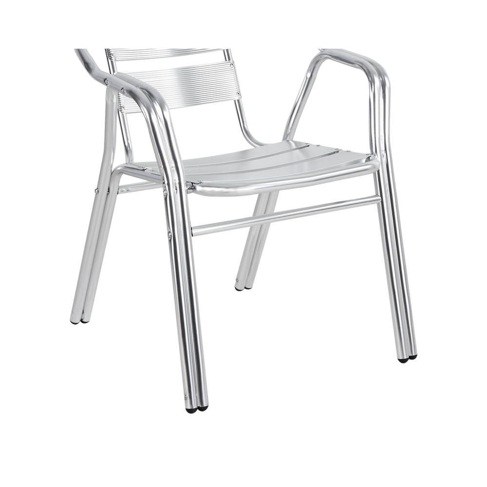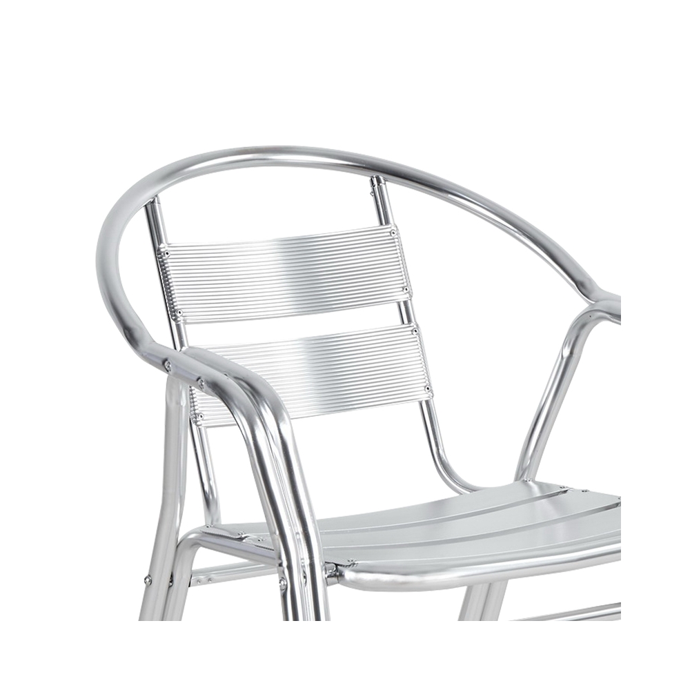 Τεχνικά χαρακτηριστικά: * Σταθερός σκελετός από αλουμίνιο εξαιρετικής ποιότητας με αντοχή σε φθορά και χρόνο. Το αλουμίνιο είναι ανθεκτικό στη σκουριά και συνήθως δεν απαιτεί συντήρηση, καθιστώντας το ιδανική επιλογή για εξωτερικά έπιπλα που θα διαρκέσουν με την πάροδο του χρόνου. * Μεγάλη ανθεκτικότητα: κατάλληλο για χρήση σε εξωτερικό χώρο εκτεθειμένο σε καιρικές συνθήκες κι υγρασία. * Προσφέρεται σε χρώμα χρωμίου. * Στοιβάζεται και προσφέρει εύκολη αποθήκευση.