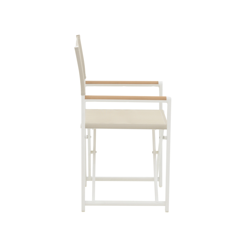 Τεχνικά χαρακτηριστικά: * Κατασκευασμένη από ενισχυμένο σκελετό αλουμινίου αρίστης ποιότητας και μεγάλης αντοχής σε χρόνο, χρήση και φθορά. * Προσφέρεται σε χρώμα λευκό * Διαθέτει πανί διάτρητο χρώματος φυσικό. * Το κάθισμα είναι πτυσσόμενο για εύκολη αποθήκευση όταν δεν χρησιμοποιείται. * Κλασσικός σχεδιασμός με υψηλές αντοχές στον χρόνο και την υγρασία. Ενδείκνυται για εξωτερικούς και επαγγελματικούς χώρους.