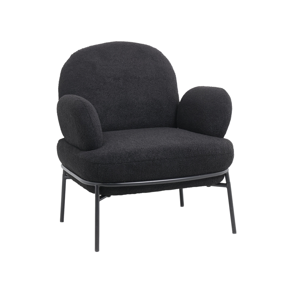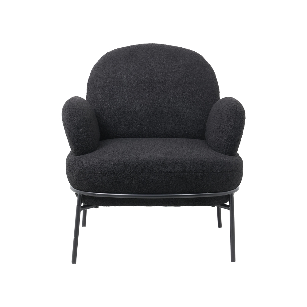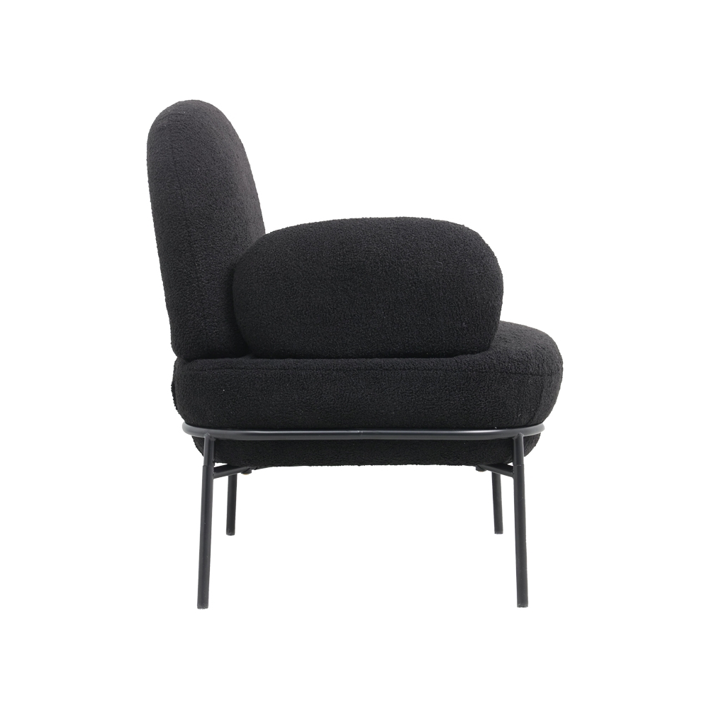 Τεχνικά χαρακτηριστικά: *Πλάτη και έδρα επενδεδυμένες με foam υψηλής ανθεκτικότητας και αντοχών στη φθορά. Αγκαλιάζει την σπονδυλική στήλη στηρίζοντας τη μέση με τον μοντέρνο καμπύλο σχεδιασμό της. *Στήριξη σε μεταλλικό σκελετό εξαιρετικής ποιότητας και αντοχής σε μαύρο χρώμα. *Επένδυση με μπουκλέ ύφασμα ασυναγώνιστης ποιότητα μαύρο χρώματος. *Οι καταλήξεις των ποδιών διαθέτουν προστατευτικά πλαστικά καλύμματα για την προστασία του πατώματος από ανεπιθύμητες φθορές.
