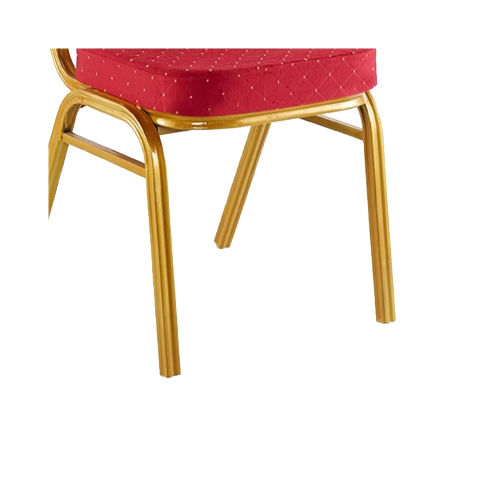 Τεχνικά χαρακτηριστικά: *Πλάτη και έδρα κατασκευασμένες από ενισχυμένο σκελετό και επενδυμένες με ύφασμα υψηλών αντοχών. Παρέχει ανθεκτικότητα και εύκολη δυνατότητα καθαρισμού, προσφέρεται σε κόκκινο χρώμα. *Ο σχεδιασμός της πλάτης ακολουθεί την σπονδυλική στήλη, στηρίζοντας τη μέση με τη μοντέρνα ελαφρώς καμπύλη μορφή της. *Στήριξη σε τέσσερα μεταλλικά πόδια εξαιρετικής ποιότητας και αντοχής, τόσο στο βάρος όσο και στο χρόνο σε χρώμα χρυσό. *Οι καταλήξεις των ποδιών διαθέτουν προστατευτικά πλαστικά καλύμματα για την προστασία του πατώματος από ανεπιθύμητες φθορές. * Στοιβαζόμενο προϊόν (δυνατότηα εύκολης αποθήκευσης).