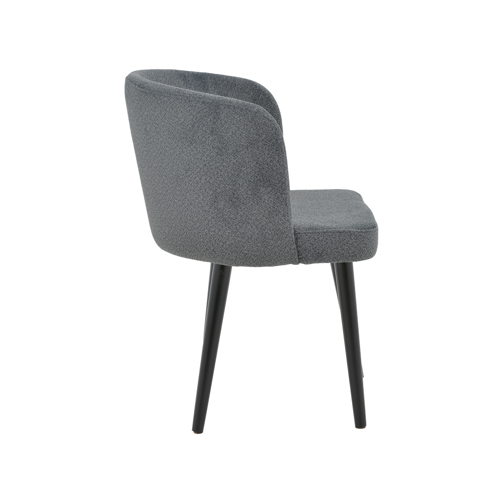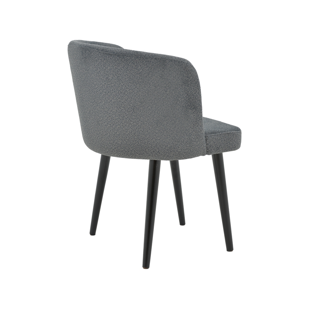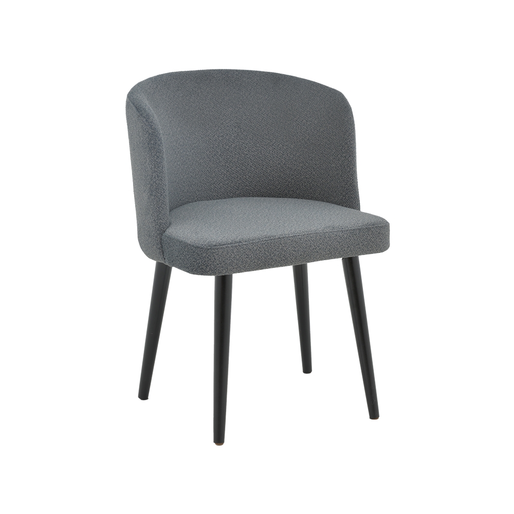 Τεχνικά χαρακτηριστικά: * Σταθερός σκελετός από υψηλής ποιότητας ξύλο με μεγάλη αντοχή στη φθορά, στο βάρος και στο χρόνο. * Επένδυση καθίσματος με μπουκλέ ύφασμα μεγάλης ανθεκτικότητας στην χρήση. * Οι καταλήξεις των ποδιών διαθέτουν προστατευτικά πλαστικά καλύμματα για την προστασία του πατώματος από ανεπιθύμητες φθορές. * Η στήριξη γίνεται πάνω σε τέσσερα μεταλλικά πόδια μαύρου χρώματος. * Ο σχεδιασμός της στηρίζει την μέση και την σπονδυλική στήλη. * Προσφέρεται σε χρώμα ανθρακί-μαύρο.