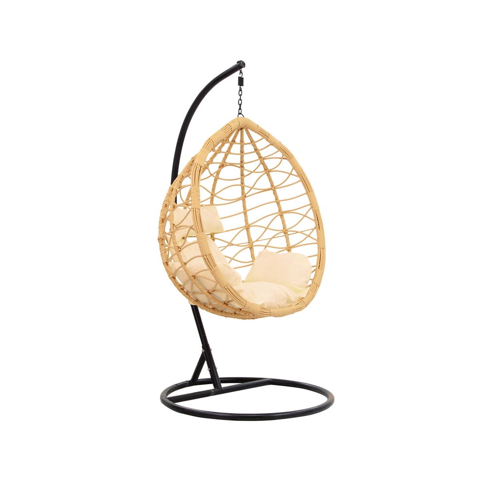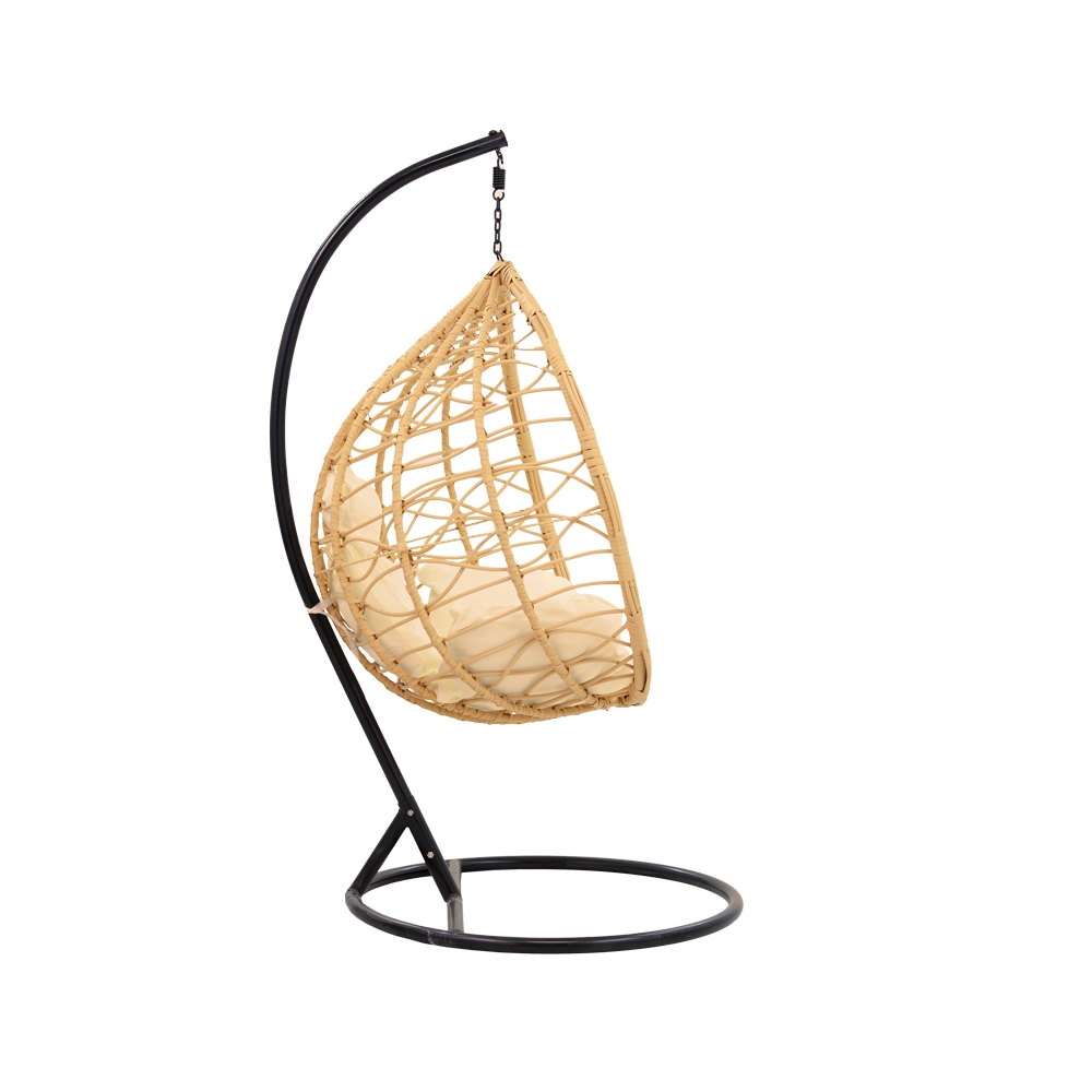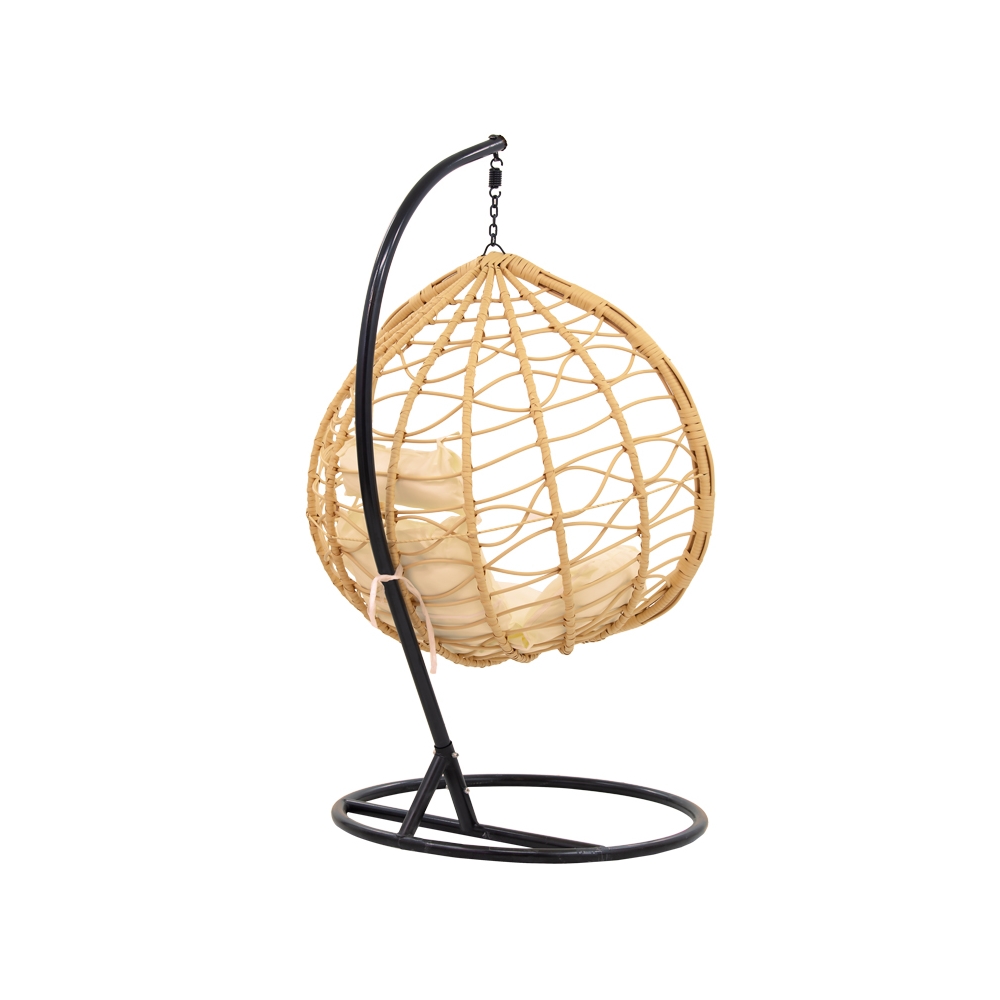 Κούνια Hudson pakoworld κρεμαστή μέταλλο μαύρο-pp φυσικό-μαξιλάρι μπεζ 109x119x195εκ