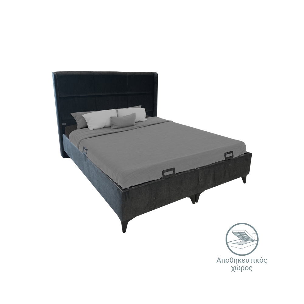 Παράδοση 4-10 ημέρεςΚρεβάτι διπλό Serene pakoworld με αποθηκευτικό χώρο ανθρακί ύφασμα 160x200εκ