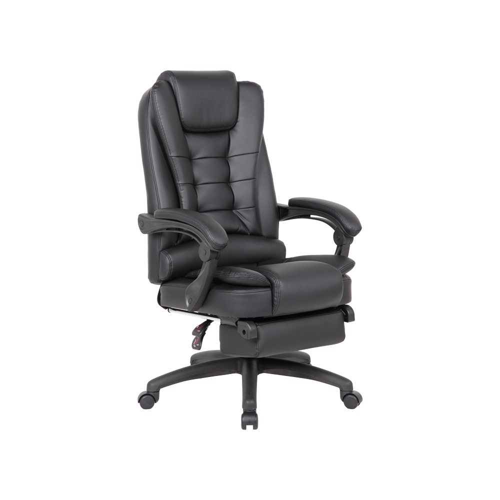 Τεχνικά χαρακτηριστικά: * Μηχανισμός Tilt / Ανακλινόμενη πλάτη: Το κάθισμα ακολουθεί την κλίση του σώματος μπρος – πίσω, προσφέροντας πλήρη ελευθερία κινήσεων, αλλά και εργονομική στήριξη της μέσης και της σπονδυλικής στήλης. Ο μηχανισμός μπορεί να ασφαλίσει στην κάθετη στάση. * Ρυθμιζόμενο ύψος: Δυνατότητα να προσαρμόζεται και να “κλειδώνει” το κάθισμα στην κατάλληλη εργονομική θέση, ανάλογα με το ύψος του χρήστη. Σύμφωνα με την εργονομία τα πόδια πρέπει να σχηματίζουν ορθή γωνία 90ο με το πάτωμα. * Τεχνόδερμα Pu: Επένδυση με τεχνόδερμα υψηλών αντοχών που παρέχει ανθεκτικότητα αλλά και εύκολη δυνατότητα καθαρισμού. * Ανατομικό μπράτσο με μοντέρνο σχεδιασμό που ακολουθεί την κλίση των χεριών, ενισχυμένο με foam για μεγαλύτερη άνεση. * Σχεδιασμός της πλάτης που αγκαλιάζει το σώμα για μεγαλύτερη ανατομία, με ενίσχυση στην κορυφή του καθίσματος για υποστήριξη του αυχένα. * Φέρει υποπόδιο που προσφέρει δυνατότητα στήριξης ποδιών και αίσθηση ξεκούρασης. * Ενισχυμένη μπουκάλα στήριξης επιπέδου class 3 * Προσφέρεται σε χρώμα μαύρο.