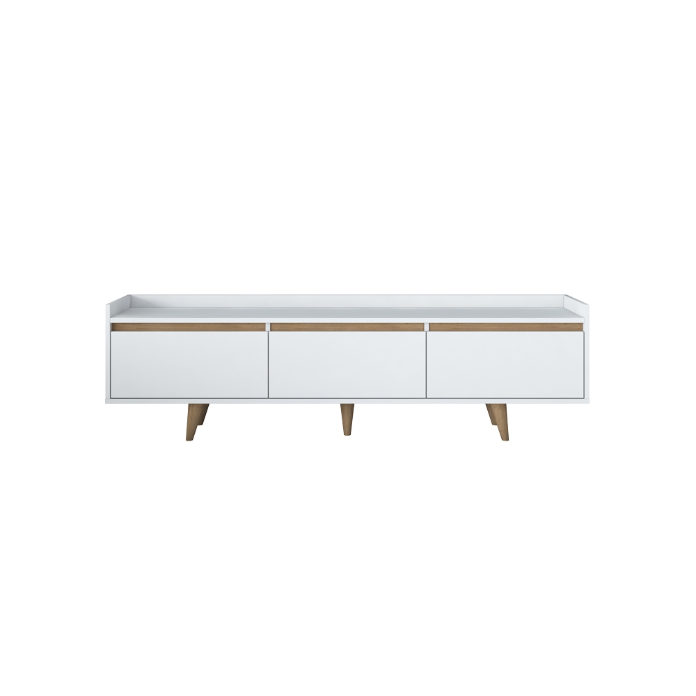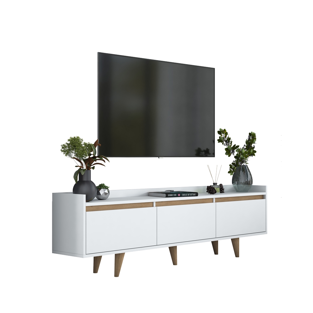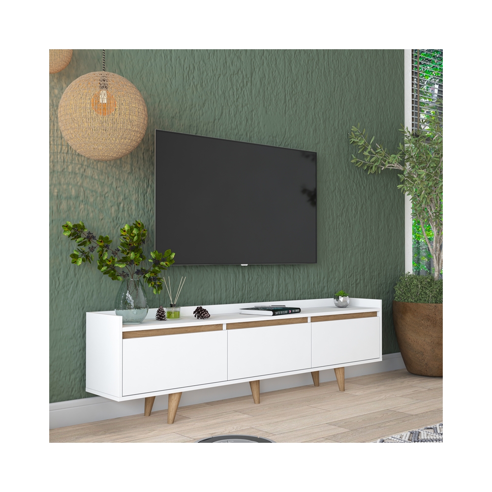 Έπιπλο τηλεόρασης Hafmi pakoworld λευκό-καρυδί μελαμίνη και ξύλινο πόδι σε φυσική απόχρωση 180x29.7x51.8εκ