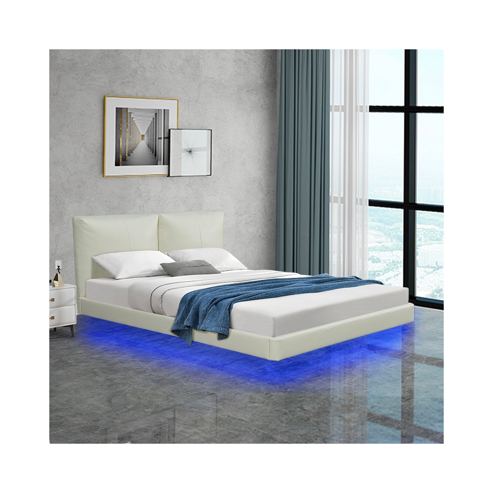 Παράδοση 4-10 ημέρεςΚρεβάτι διπλό Jessie pakoworld floating style με led-PU εκρού 160x200εκ