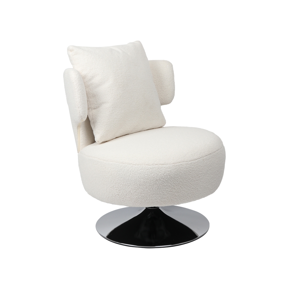 Πολυθρόνα με μαξιλάρι Percival pakoworld μπουκλέ ύφασμα λευκό-βάση χρωμίου 76x67x76εκ