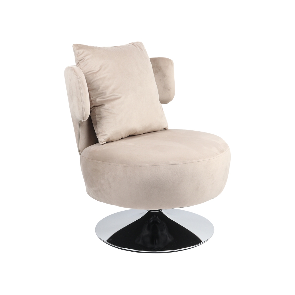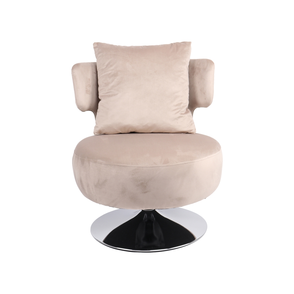 Πολυθρόνα με μαξιλάρι Percival pakoworld ύφασμα μπεζ-βάση χρωμίου 76x67x76εκ