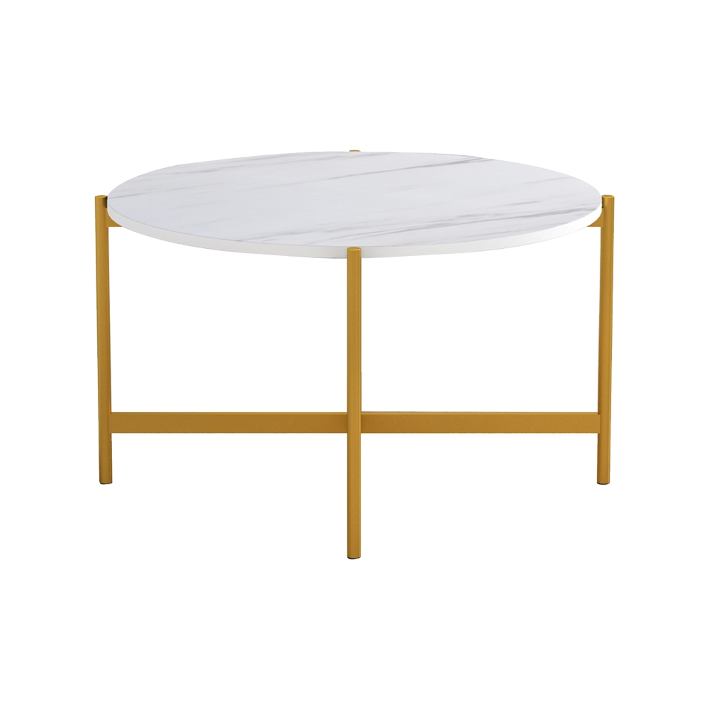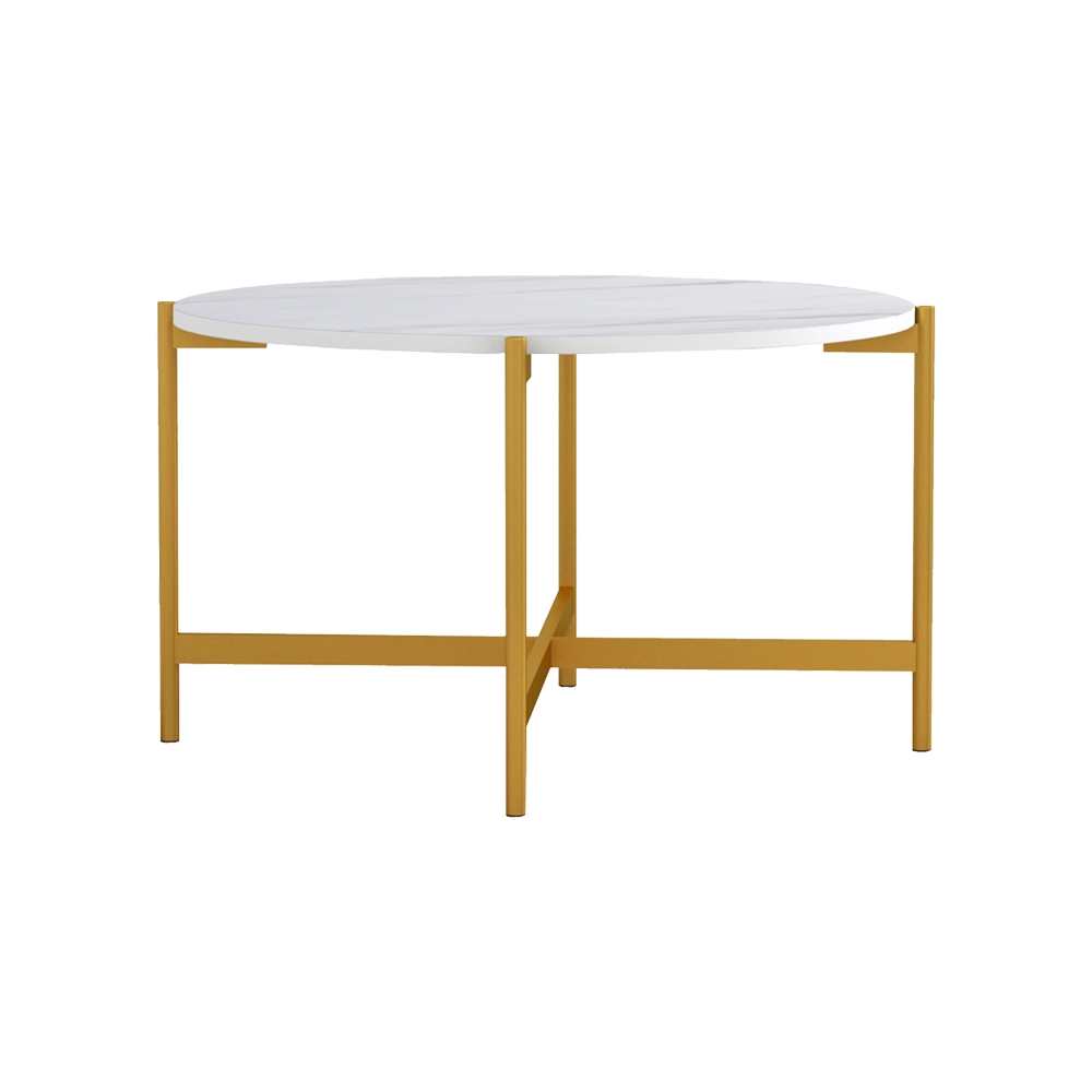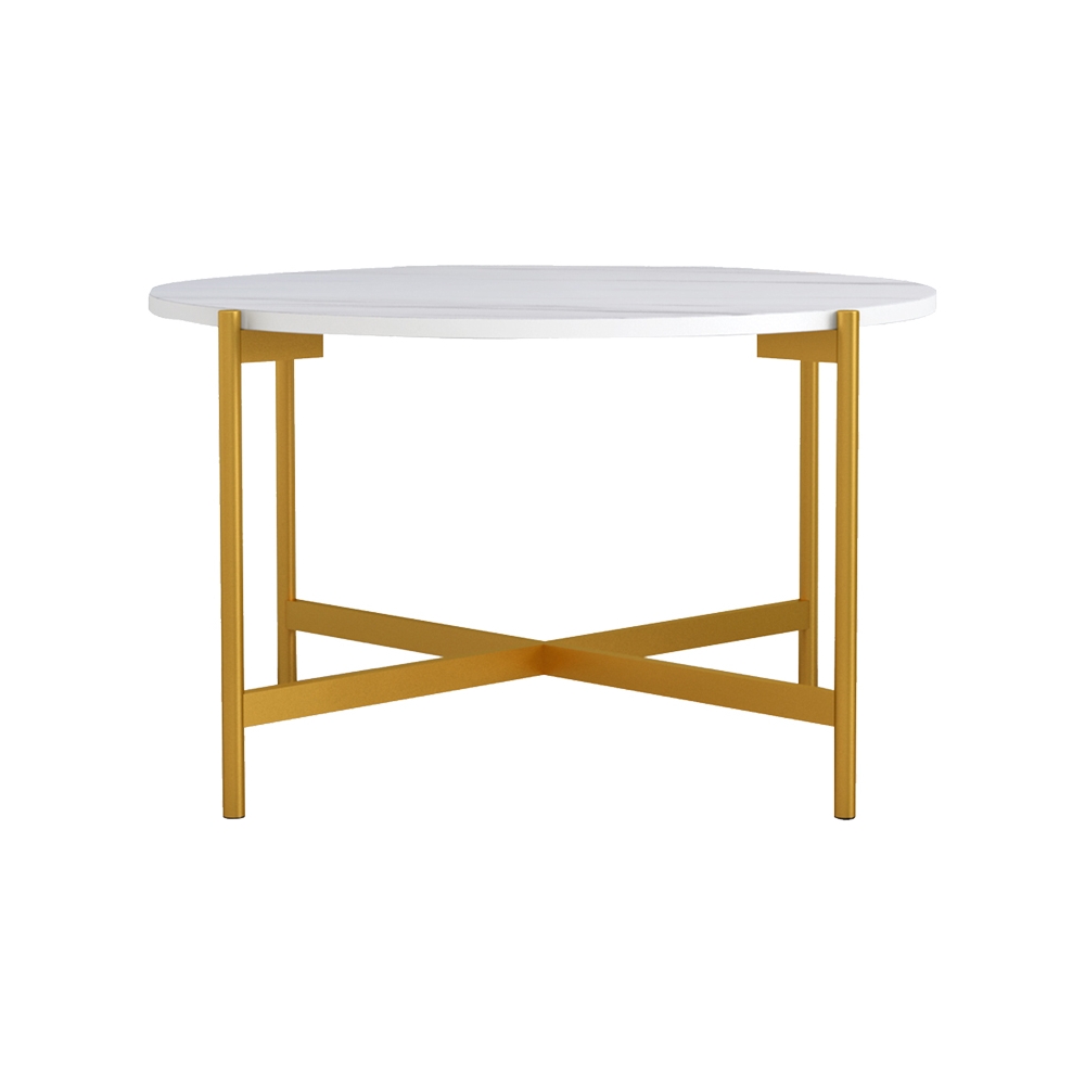 Τεχνικά χαρακτηριστικά: *Επιφάνεια κατασκευασμένη από μοριοσανίδα υψηλής ποιότητας με επένδυση μελαμίνης. Η μοριοσανίδα με μελαμίνη είναι ένας τύπος ξύλινης σανίδας που κατασκευάζεται από μοριοσωματίδια, τα οποία είναι μικρά κομμάτια ξύλου που έχουν συντηρηθεί και συνθετικά συνδεθεί με ειδική ρητίνη υψηλής πίεσης. Η μελαμίνη που καλύπτει την επιφάνεια είναι ένα είδος πλαστικού που παρέχει ανθεκτική επιφάνεια σε γρατζουνιές, υγρασία και φθορές. *Στήριξη σε ανθεκτική μεταλλική κατασκευή χρυσού χρώματος. * Προσφέρεται σε χρώμα λευκό χρυσό.