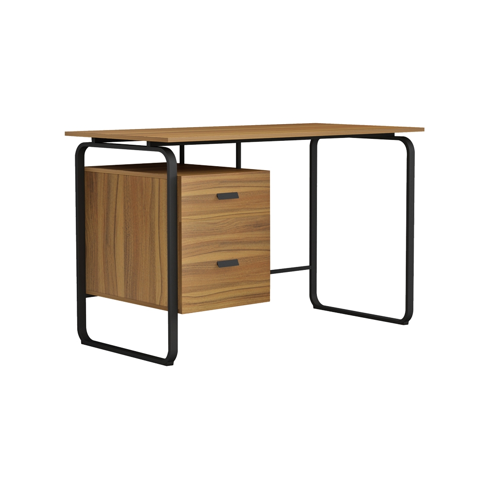 Γραφείο εργασίας με συρτάρια Clarity pakoworld μελαμίνης καρυδί-μαύρο 120x60x75εκ