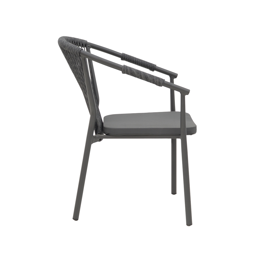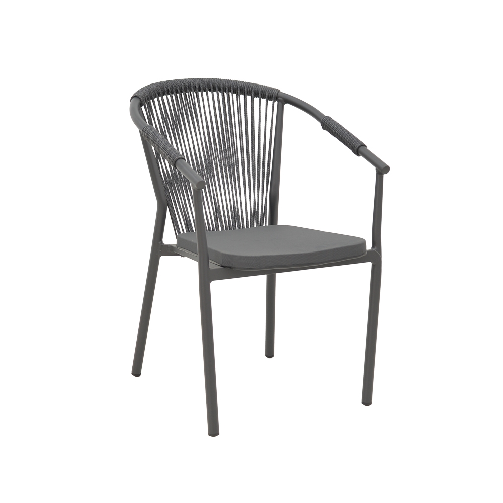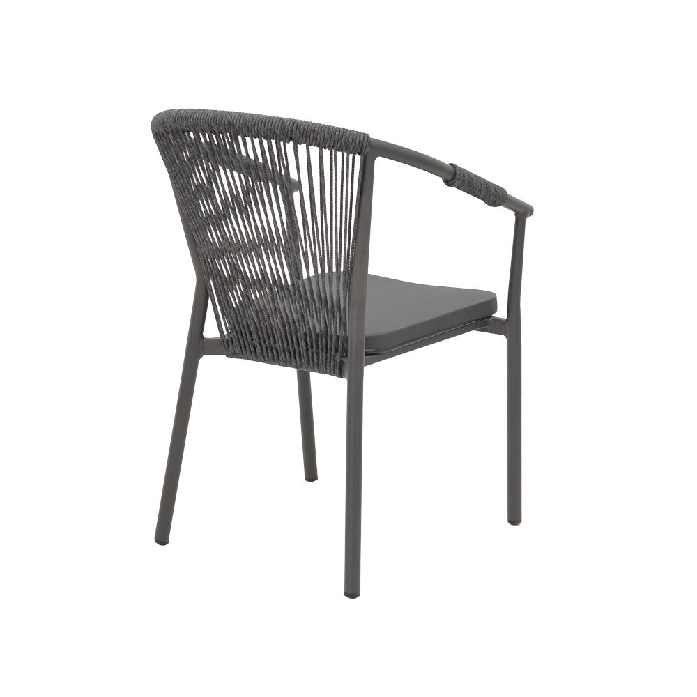 * Κυρίως σώμα καρέκλας από εξαιρετικής ποιότητας mesh ύφασμα και ρατάν. Η κύρια ιδιότητα του ράταν είναι η ευελιξία του, καθώς μπορεί να πλεκτεί και να διαμορφωθεί εύκολα. Επίσης, είναι ανθεκτικό και αντέχει στις καιρικές συνθήκες, καθιστώντας το ιδανικό για επιπλέον εξωτερικούς χώρους. Το ύφασμα mesh είναι ένας τύπος υφάσματος που χαρακτηρίζεται από την άνοιγμά του, δηλαδή την ύπαρξη μικρών οπών ή δικτυών που επιτρέπουν τη διέλευση αέρα και φωτός.