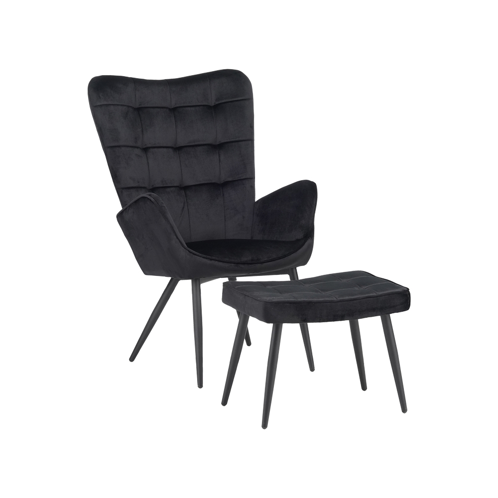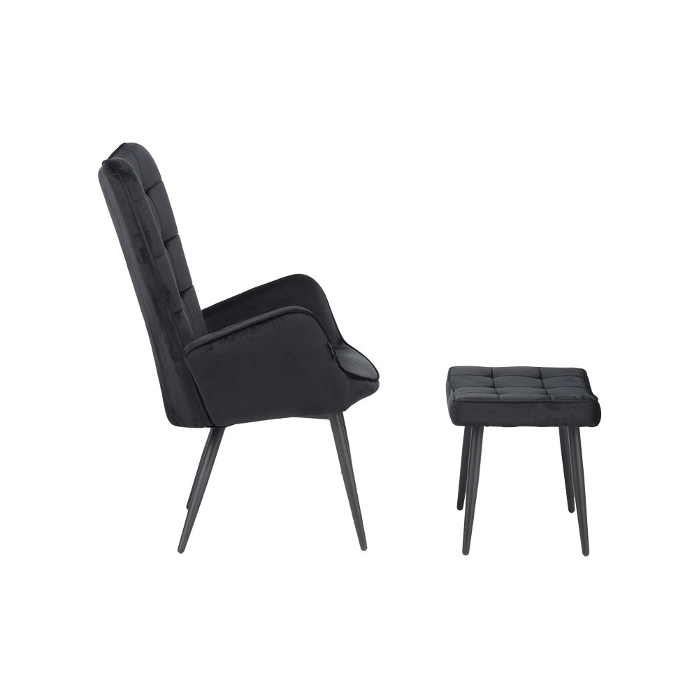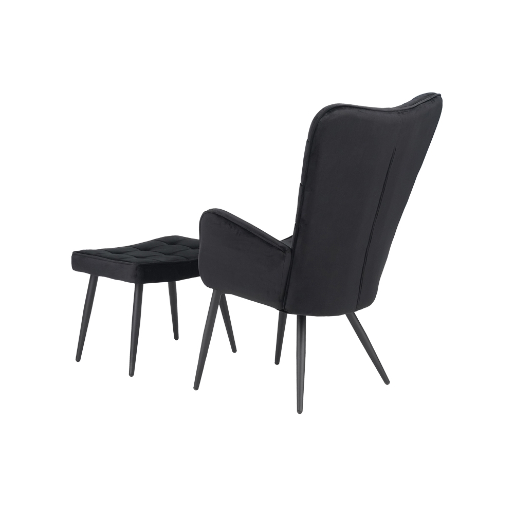 Πολυθρόνα με υποπόδιο Dorita pakoworld βελούδο μαύρο-πόδι μαύρο μέταλλο 68.5x76x103εκ