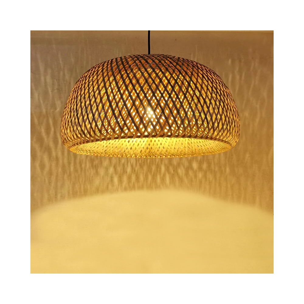 Τεχνικά χαρακτηριστικά: * Κατασκευή φυσικό μπαμπού. Το φυσικό μπαμπού είναι ένα είδος υλικού που προέρχεται από το μπαμπού, ένα ευέλικτο και ανθεκτικό φυτό που ανήκει στην οικογένεια των Poaceae. Η φυσική του όψη και υφή προσδίδουν μια φυσική και εκλεπτυσμένη αίσθηση στα προϊόντα που κατασκευάζονται από αυτό. * Ο σχεδιασμός του καπέλου επιτρέπει στο φως να διαχέεται εκπληκτικά όταν το φωτιστικό είναι σε λειτουργία. * Φέρει θέση για έναν λαμπτήρα Ε27 ως 40W ο οποίος δεν συμπεριλαμβάνεται στη συσκευασία. * Προσφέρεται σε χρώμα φυσικό.