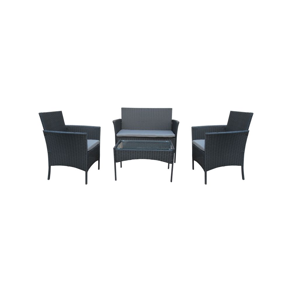Σαλόνι κήπου Calmness pakoworld σετ 4τμχ rattan μαύρο-ύφασμα γκρι