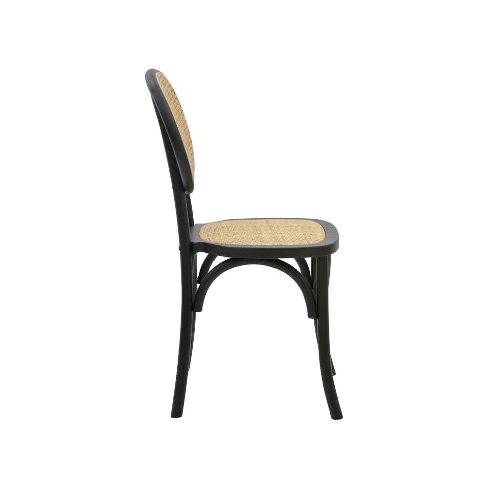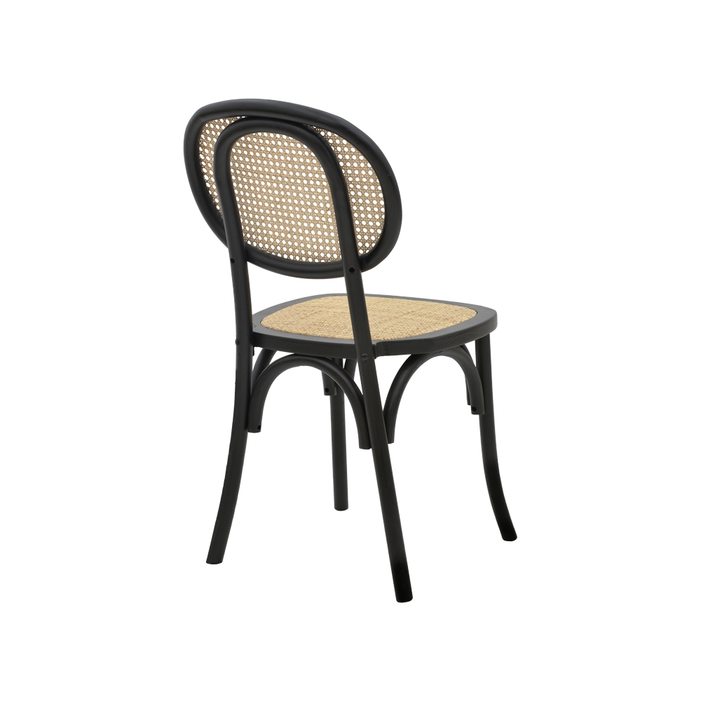Τεχνικά χαρακτηριστικά: *Κατασκευασμένη από ξύλο οξιάς εξαιρετικής ποιότητας και αντοχής σε μαύρο χρώμα. Το ξύλο οξιάς προέρχεται από το δέντρο οξιά, ένα φυλλοβόλο δέντρο που είναι εγγενές στην Ευρώπη και την Ασία. Είναι ένα από τα πιο κοινά σκληρά ξύλα στην Ευρώπη και εκτιμάται για τη σκληρότητα, την ανθεκτικότητα και την ομορφιά του. Διαθέτει ανοιχτό καφέ έως κρεμ χρώμα με λεπτή, ομοιόμορφη υφή. Έχει σφιχτούς πόρους και ελάχιστα ορατά νερά, δίνοντάς του μια καθαρή, κομψή εμφάνιση. Είναι επίσης πολύ σκληρό και ανθεκτικό, καθιστώντας το μια καλή επιλογή για έπιπλα και δάπεδα που θα αντέξουν σε βαριά χρήση. Το ξύλο οξιάς είναι εύκολο στην κοπή, τη διαμόρφωση και το φινίρισμα, κάνοντάς το ιδανικό για επίπλωση και άλλες κατασκευές. * Έδρα και πλάτη κατασκευασμένα από φυσικό rattan μεγάλης αντοχής σε φθορά και χρόνο. Είναι ανθεκτικό στις καιρικές συνθήκες, δεν φθείρεται από τον ήλιο ή τη βροχή και δεν ξεθωριάζεi, ενώ παράλληλα είναι φιλικό προς το περιβάλλον. * Οι καταλήξεις των ποδιών διαθέτουν προστατευτικά πλαστικά καλύμματα για την προστασία του πατώματος από ανεπιθύμητες φθορές. * Προσφέρεται σε χρώμα μαύρο.