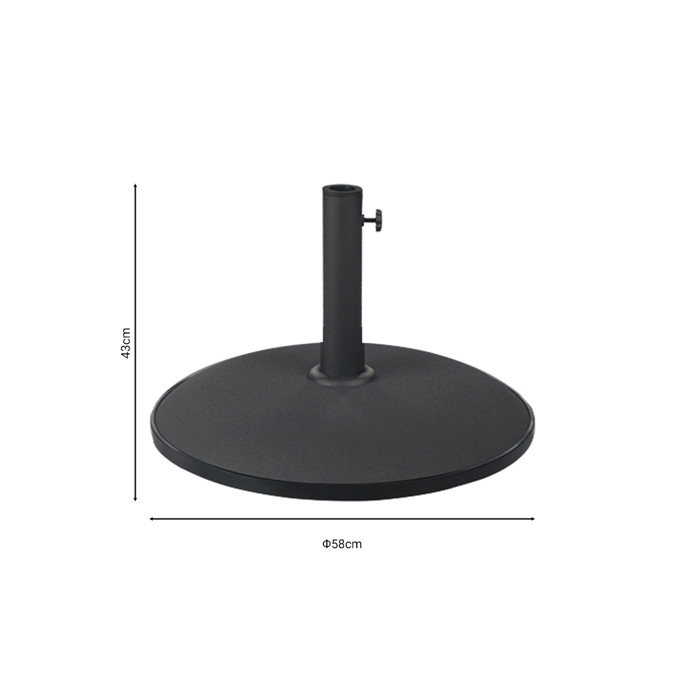 Τεχνικά χαρακτηριστικά: * Κατασκευή από τσιμέντο εξαιρετικής ποιότητας με μεγάλη αντοχή σε βάρος, χρήση και φθορά. Η βάση από τσιμέντο προσφέρει σταθερότητα και ασφάλεια, κρατώντας την ομπρέλα σταθερή ακόμα και σε ανεπίφορες καιρικές συνθήκες. Είναι μια πρακτική και αξιόπιστη επιλογή για τη δημιουργία ενός άνετου και λειτουργικού εξωτερικού χώρου. * Προσφέρεται σε χρώμα μαύρο. * Διάμετρος σωλήνα: 7εκ * Διάμετρος θέσεων σωλήνα: 5.8εκ - 4.8εκ - 3.8εκ * Βάρος προϊόντος 50kg. * Διάμετρος άξονα ομπρέλας: 58εκ