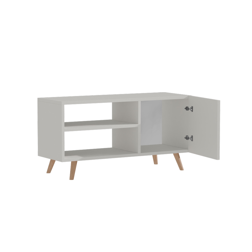 Τεχνικά χαρακτηριστικά: * Κατασκευή από μοριοσανίδα με επένδυση μελαμίνης υψηλής ποιότητας με αντοχή στην καταπόνηση και στον χρόνο. * Διαθέτει δύο ράφια κάτω από την κύρια επιφάνεια για την ανοιχτή αποθήκευση των μικροπραγμάτων σας, στήριξη ηλεκτρονικών συσκευών ή και διακοσμητικών προϊόντων. *Διαθέτει ένα ντουλάπι για την κλειστή αποθήκευση των αγαπημένων σας αντικειμένων. * Προσφέρεται σε λευκό χρώμα με την απόχρωση των τεσσάρων στηρικτικών ποδιών να είναι στην απόχρωση του φυσικού.