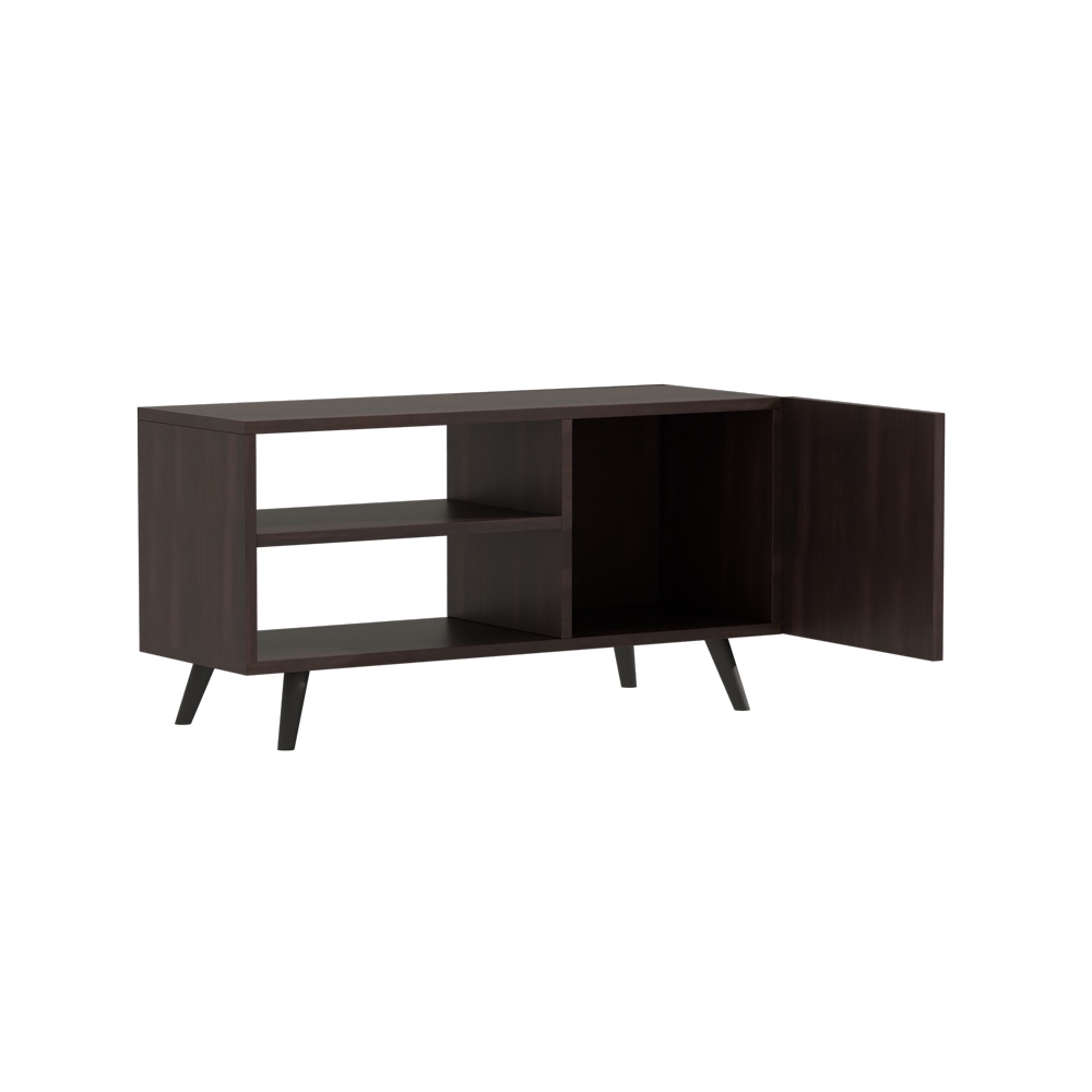 Τεχνικά χαρακτηριστικά: * Κατασκευή από μοριοσανίδα με επένδυση μελαμίνης υψηλής ποιότητας με αντοχή στην καταπόνηση και στον χρόνο. * Διαθέτει δύο ράφια κάτω από την κύρια επιφάνεια για την ανοιχτή αποθήκευση των μικροπραγμάτων σας, στήριξη ηλεκτρονικών συσκευών ή και διακοσμητικών προϊόντων. *Διαθέτει ένα ντουλάπι για την κλειστή αποθήκευση των αγαπημένων σας αντικειμένων. * Προσφέρεται σε καρυδί χρώμα με την απόχρωση των τεσσάρων στηρικτικών ποδιών να είναι στην απόχρωση του wenge.