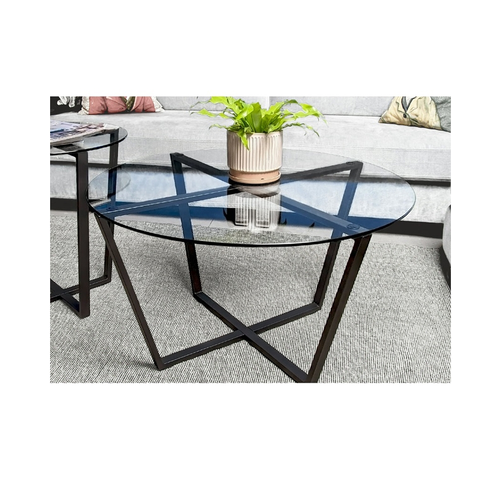 Τραπέζι σαλονιού Quendy pakoworld μαύρο μέταλλο-γυαλί Φ90x45εκ Pakoworld 197-000248