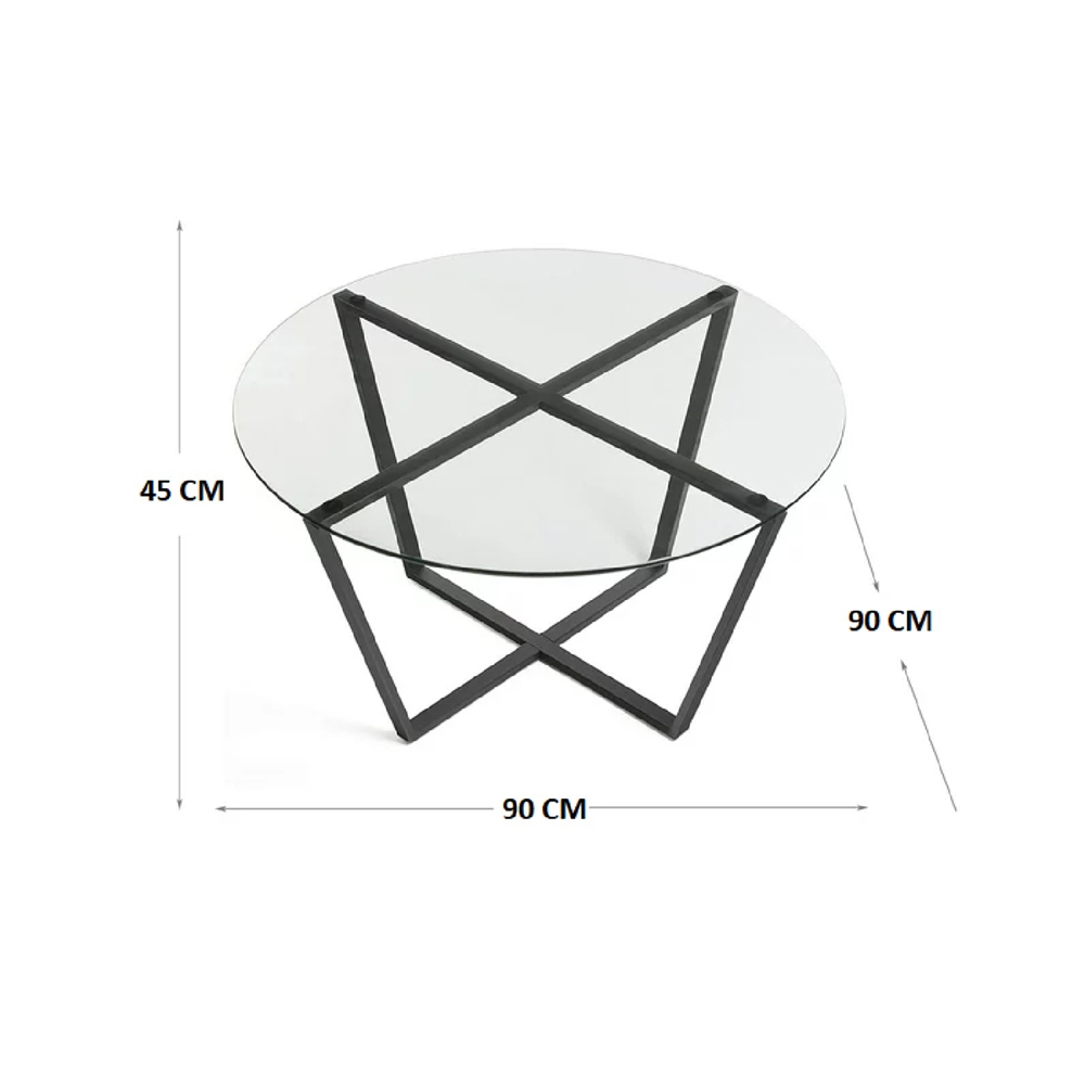 Τραπέζι σαλονιού Quendy pakoworld μαύρο μέταλλο-γυαλί Φ90x45εκ